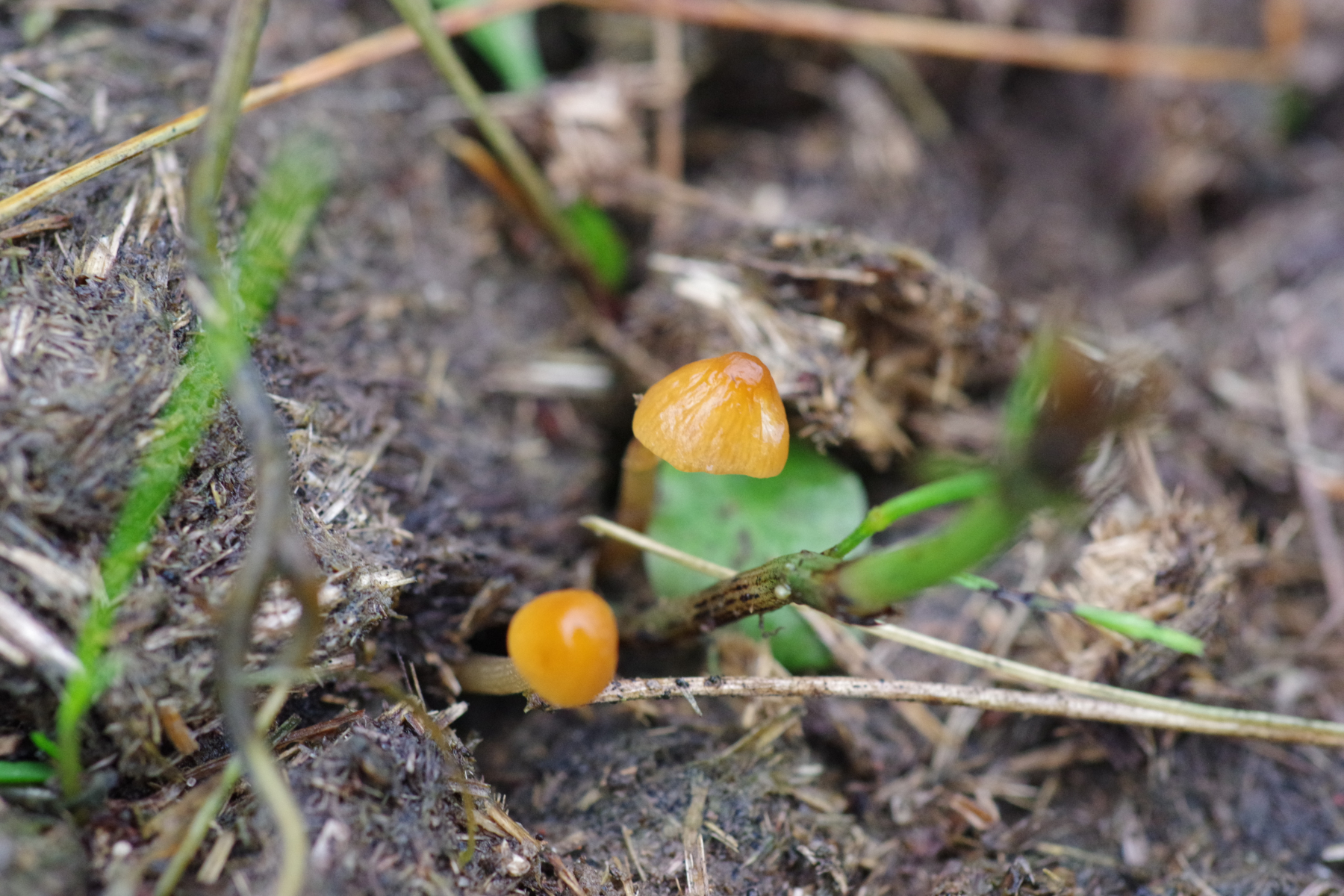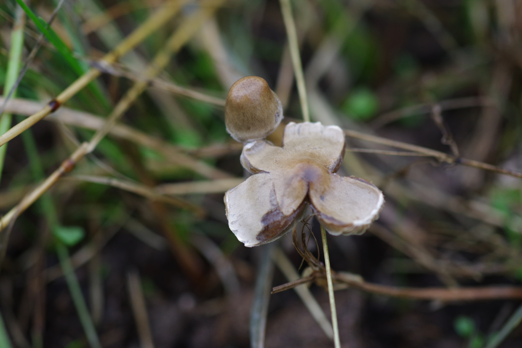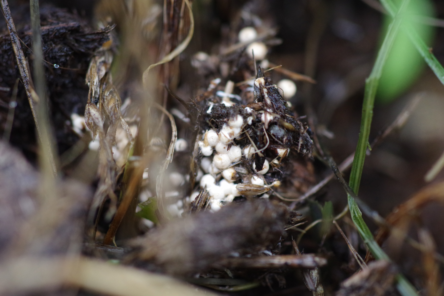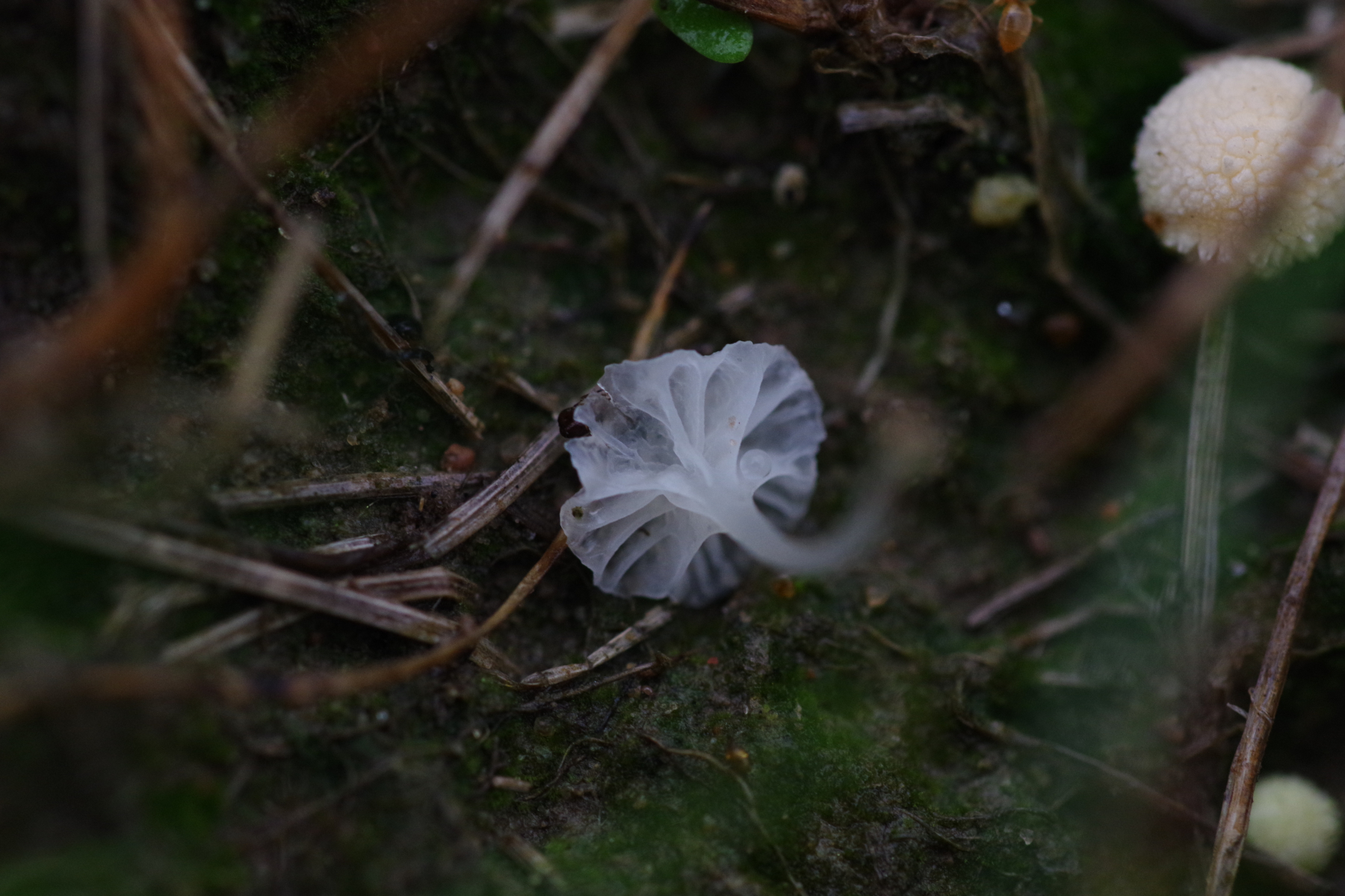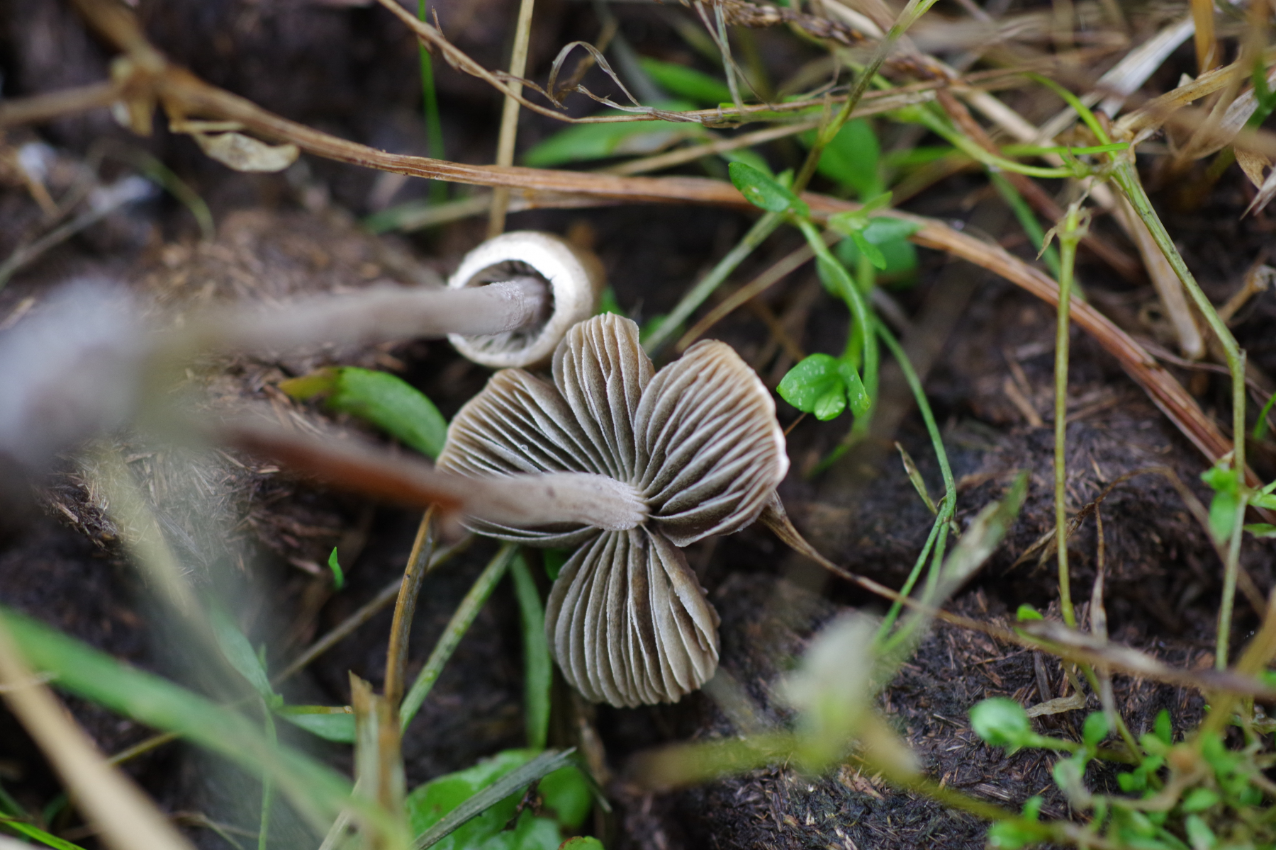5)Standortwechsel, ein aus Sand aufgeschütteter Ameisenhaufen; bei dem komme ich zu Hemimycena mairei, was wohl ziemlich selten ist bei 159 Eintragungen in pilze-in-deutschland - die Verwchslungsarten scheinen alle andere Substrate zu benötigen