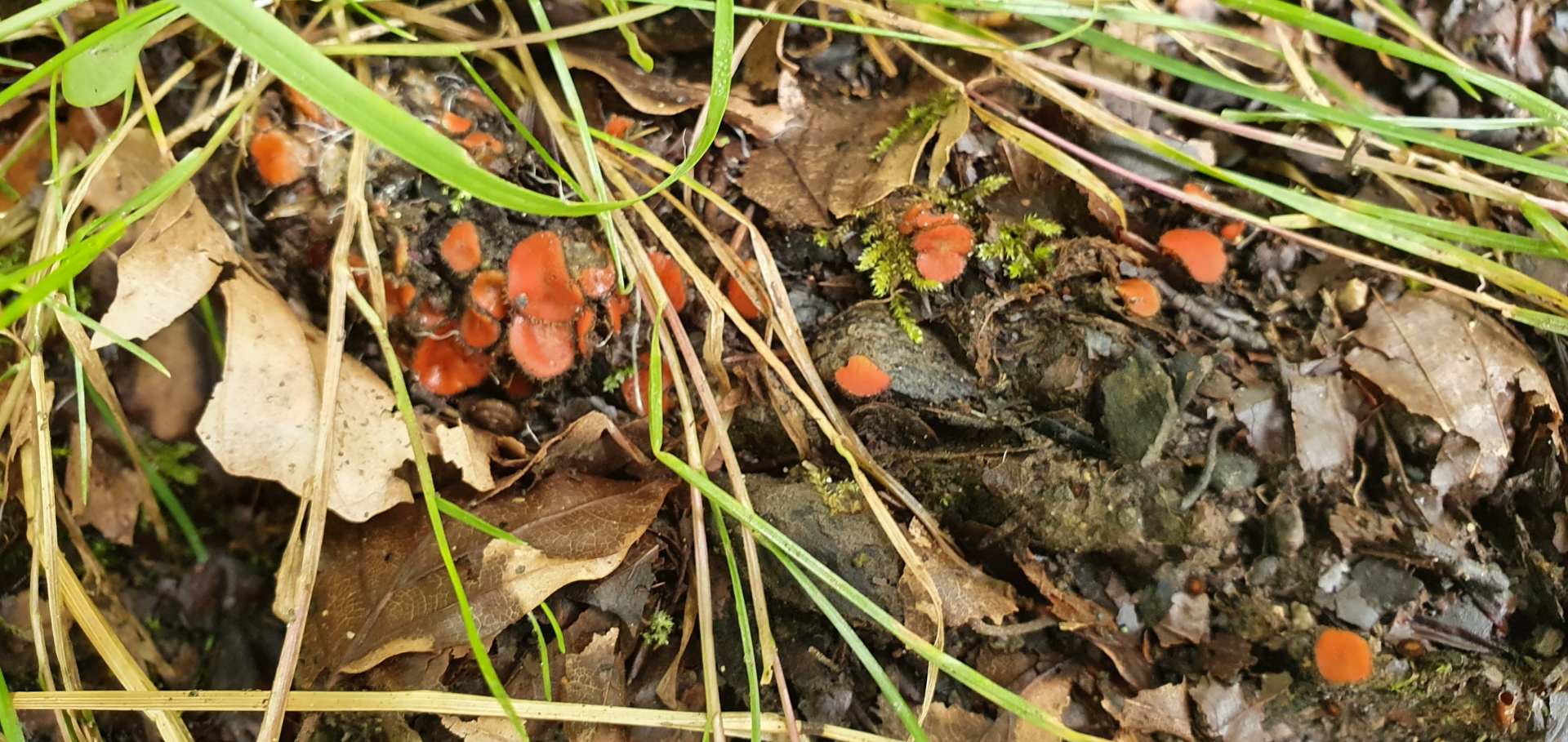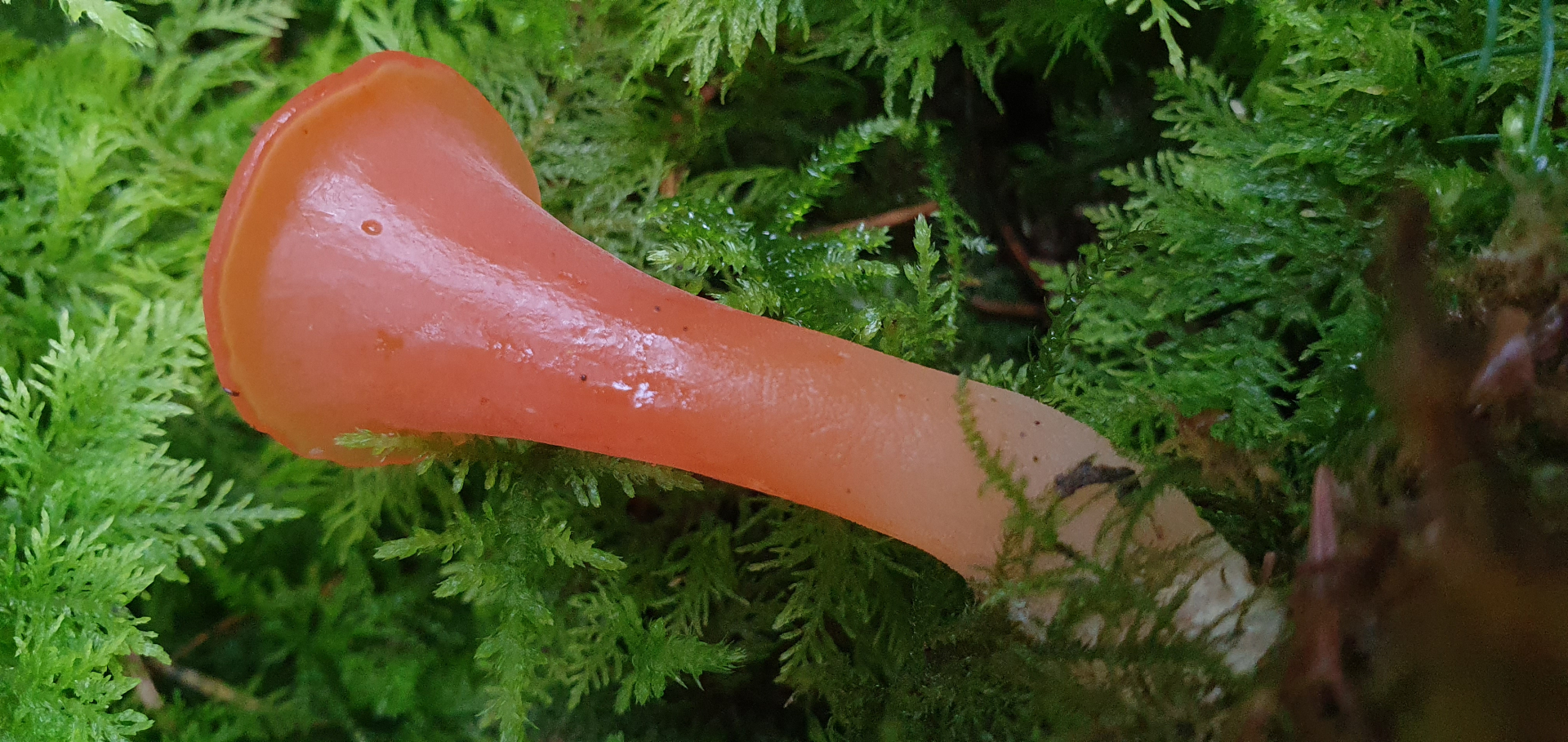 In einer jüngeren Fichtenschonung mit sehr feuchtem Untergrund sehr hübsch der fleischfarbene Gallerttrichterling - 10 Guepinia Helvelloides (habe gesehen, das dieser die Tage parallel von ogni volta gefunden und gezeigt wurde, für mich ein Erstfund)