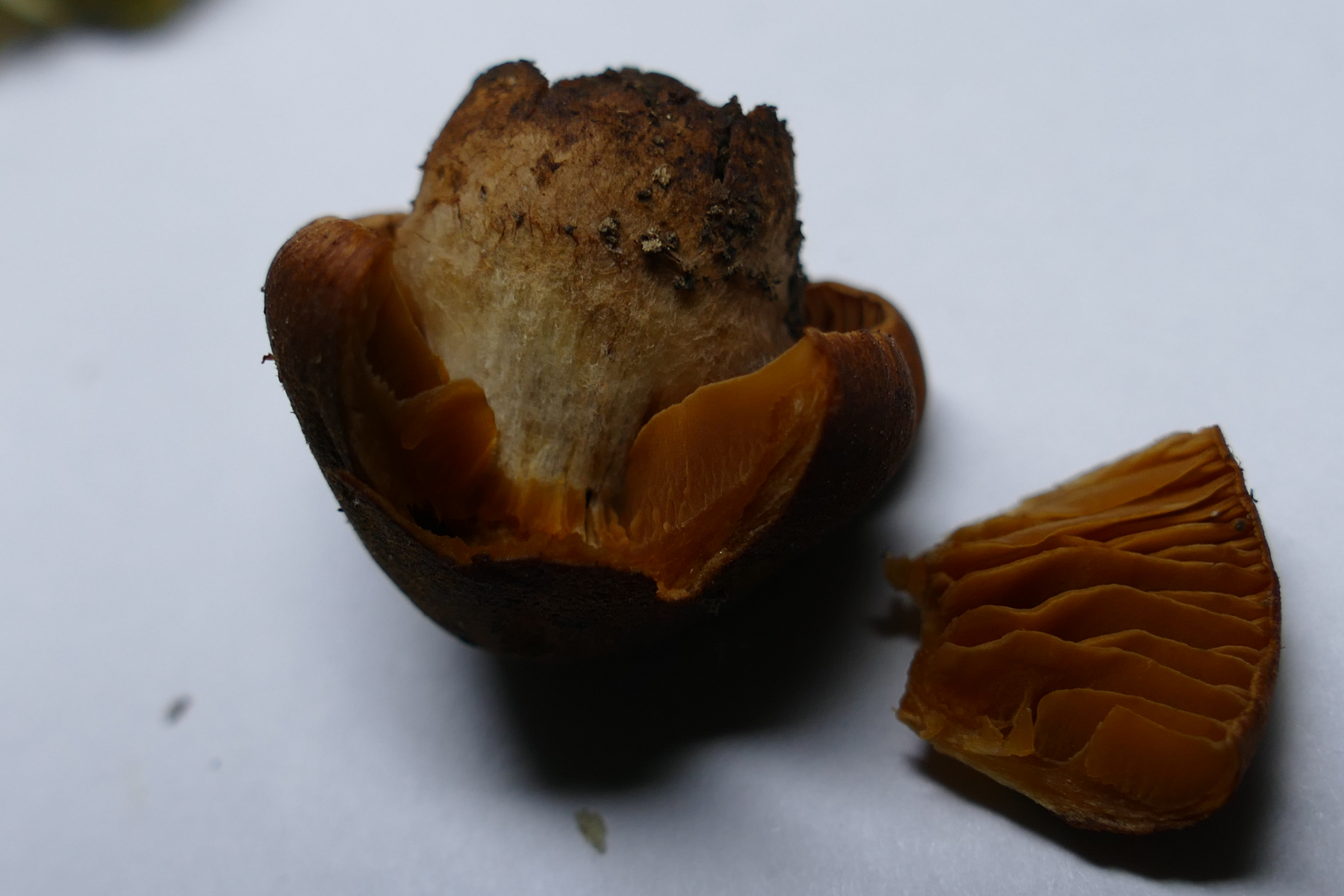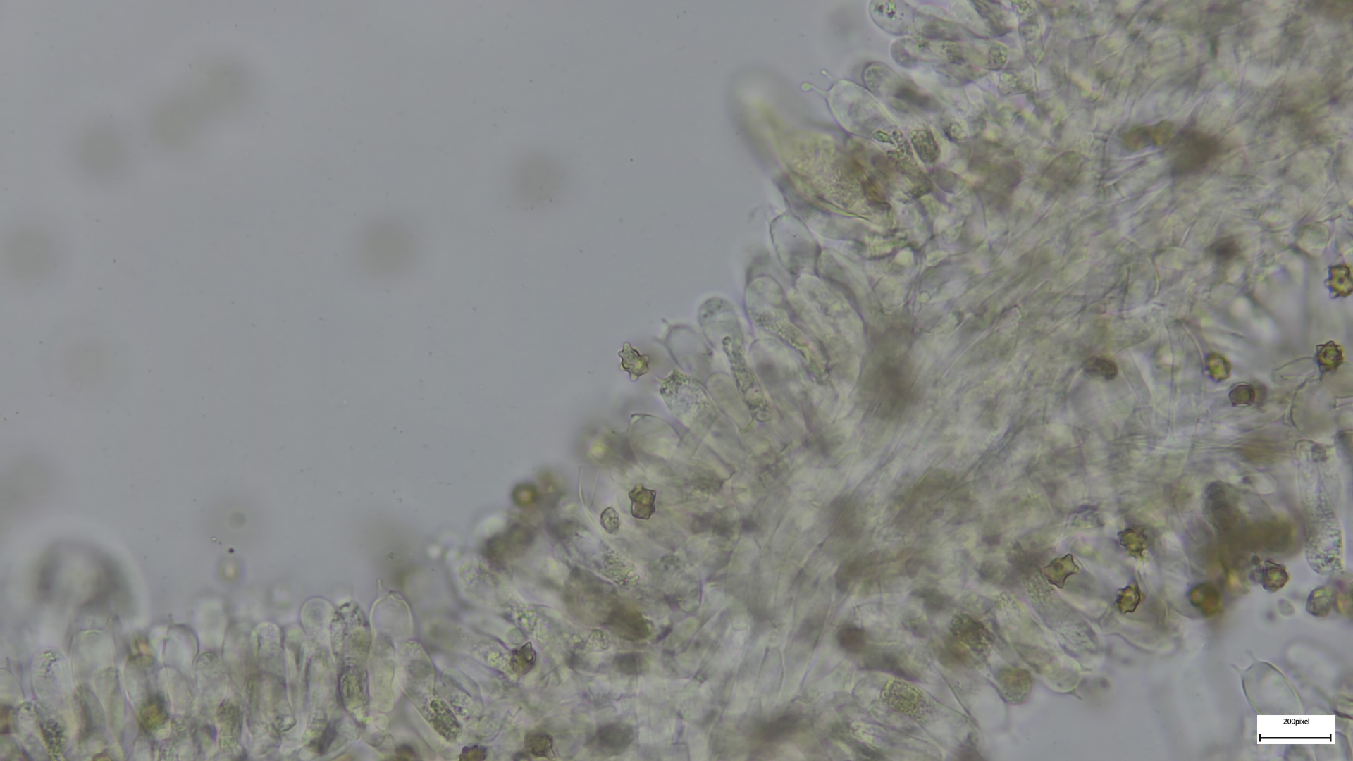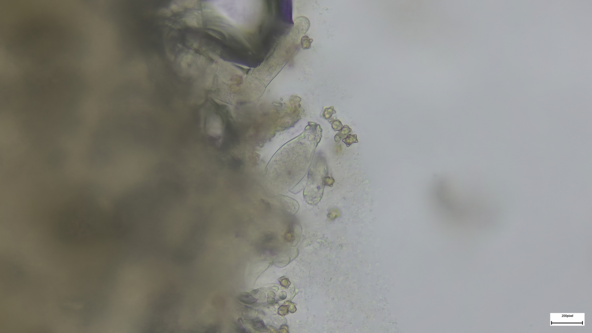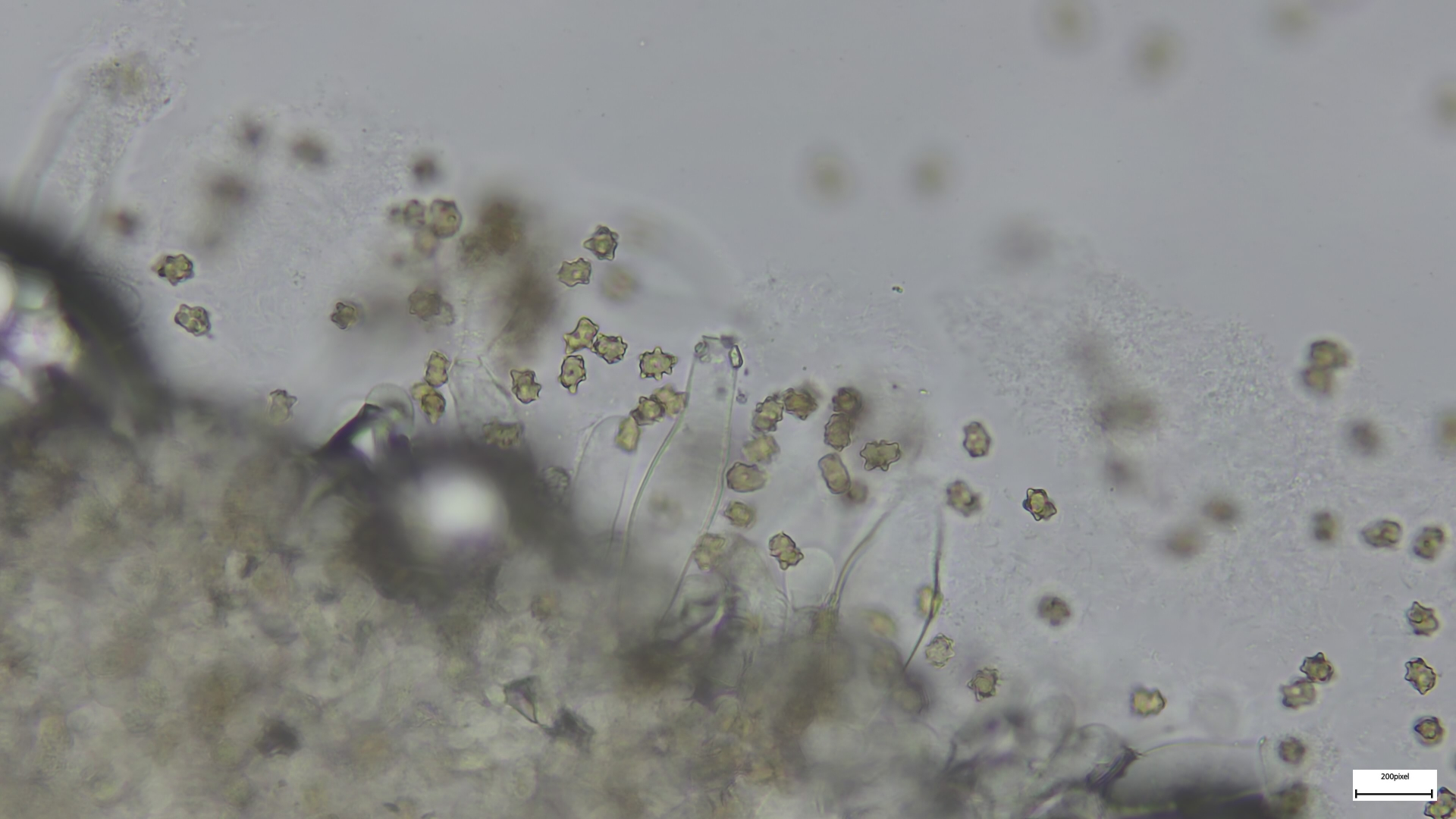 Matthias: die makroskopische Ähnlichkeit ist verblüffend. Er stand übrigens am Fuße der gezeigten Eiche, nicht Buche. Aber oliveofuscus kann an einigen Laubbäumen vorkommen, wie sich nachlesen lässt. Die Frage mit den Sporen ist natürlich ein Problem. Sollte das Verunreinigung sein? Im Grunde habe ich den kleinen Pilz aber in einem eigenen kleinen Fach einer Box transportiert. Leider hat der Sporenabwurf ja nicht funktioniert und von dem Fruchtkörper ist heut im Grunde nicht mehr übrig. Hatte gerade nochmal die Idee, den Stiel abzufahren und auf diesem nach Sporen zu fahnden. Da habe ich jetzt aber im Grunde einige globose mit Spikes gefunden(???), die immer wieder (!) am Stiel verteilt waren und etwa 7,5x8µm hatten. Sehr mysteriös und alles nicht hilfreich. Echt ärgerlich, dass gerade bei solchen Funden dann der Abwurf nicht hinhaut. Zumindest weiß ich ziemlich genau, wo ich den gefunden habe. Den Standort finde ich sicher wieder. Vielleicht begegnen wir uns irgendwann nochmal. Auf jedenfall sehr spannend auch mit den Hautköpfen!