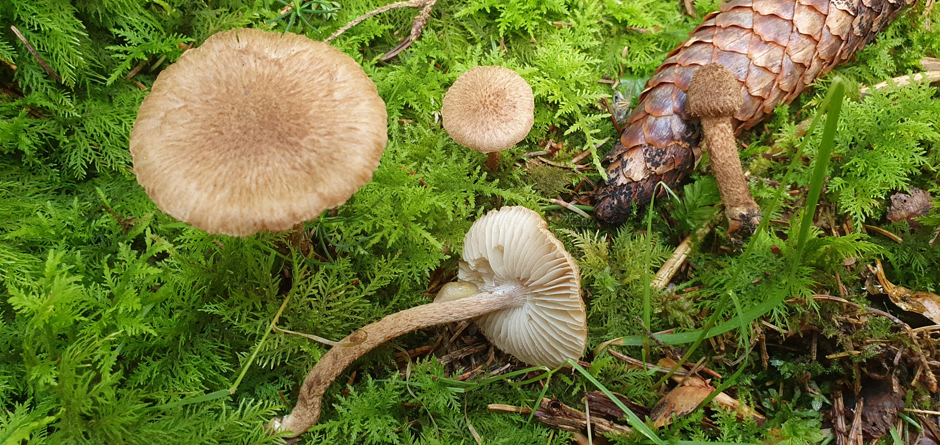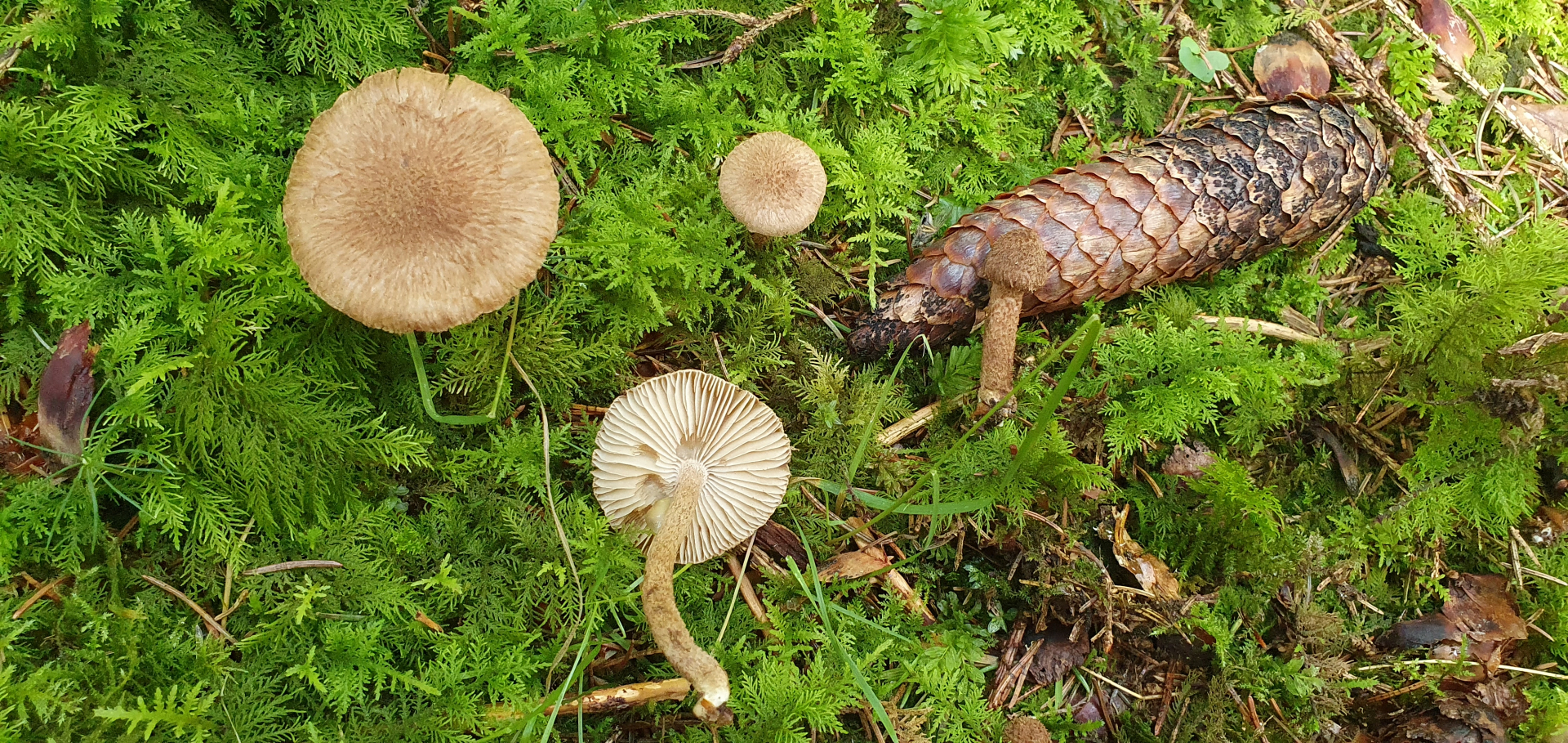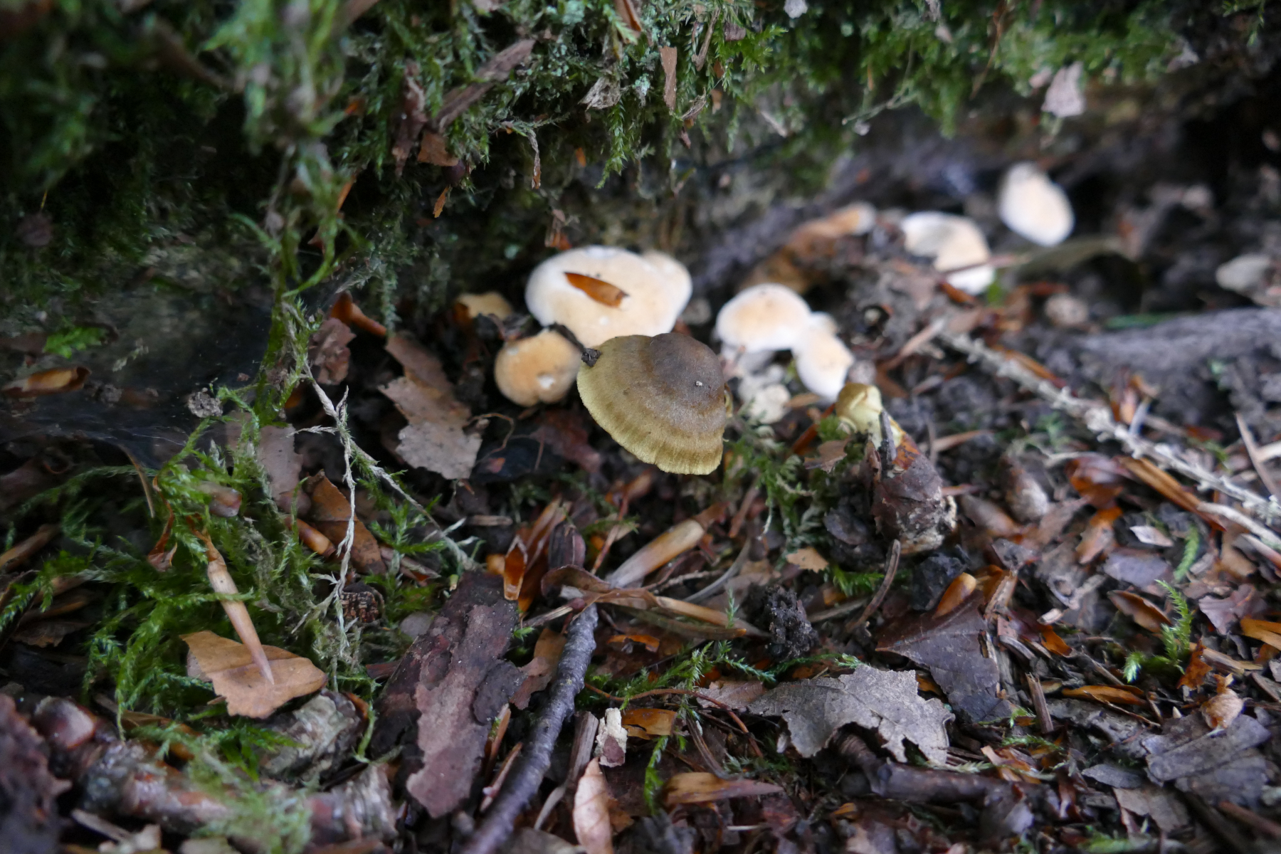 In den Wahnsinn treiben mich die Cortinarien, mit der Gattung habe ich einfach viel zu wenig Erfahrung und zudem habe ich noch zwei kleine Exemplare gefunden, die ich für Cortinarien halte, bei denen ich nicht im Ansatz weiß, in welche Richtung ich gucken soll ... ich nenne Sie liebevoll den kleinen Grünen und den kleinen Roten: