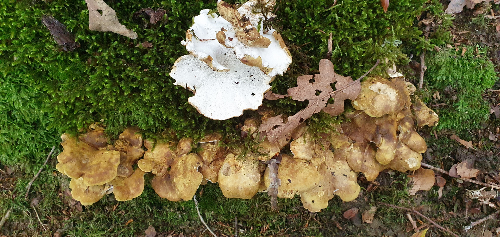 Zum Abschluss noch ein paar Winzlinge, die aber vermutlich mal größer werden wollen, an einer Stelle viele kleine Büschel mit winzigen Köpfchen von Cantharellus tubaeformis: