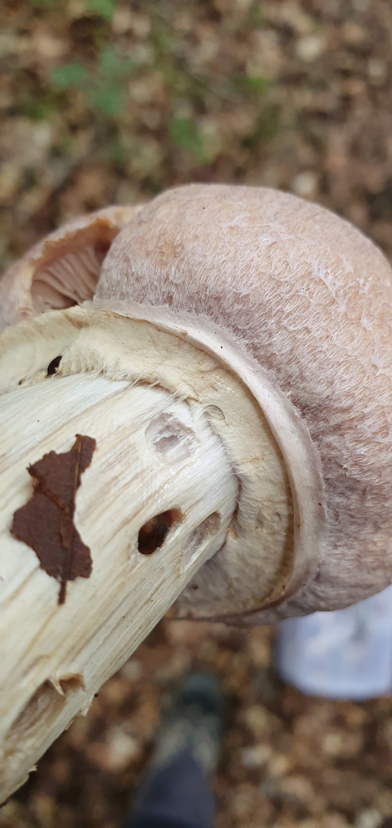 Unter den Braunsporern mit so kräftigem Teilvelum ist mir nur Agaricus eingefallen. Und mit diesen Farben gibt's dann nicht viele Alternativen. Aber das Schnittbild durch den Stiel hat mich auch schon irritiert. Danke für die Aufklärung.