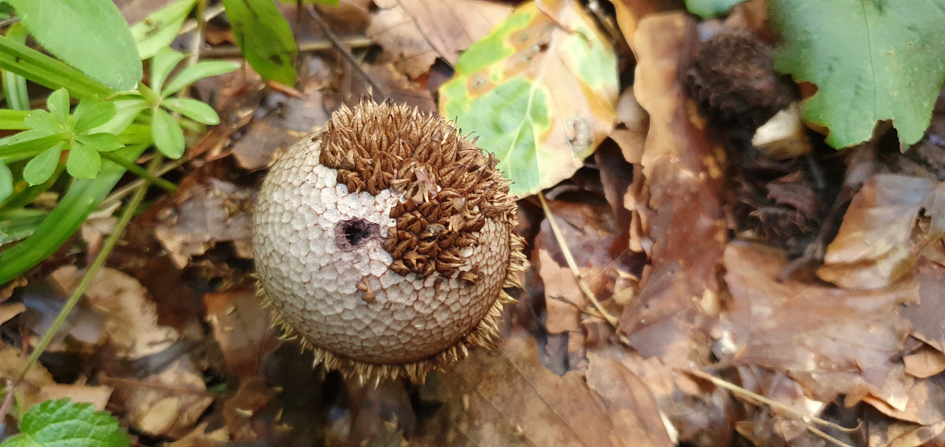 Zwischendrin nochmal stutzig ... ist das ein Punker-Golfball ... puuh, so sieht wohl der Igelstäubling aus, wenn er sich entblättert (Igelstäublinge gabs dort auch sehr oft.