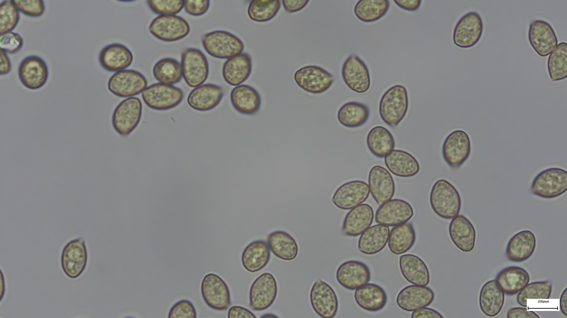 Sporen 9x5,5µm, amygdaliform (aus Sporenabwurf),