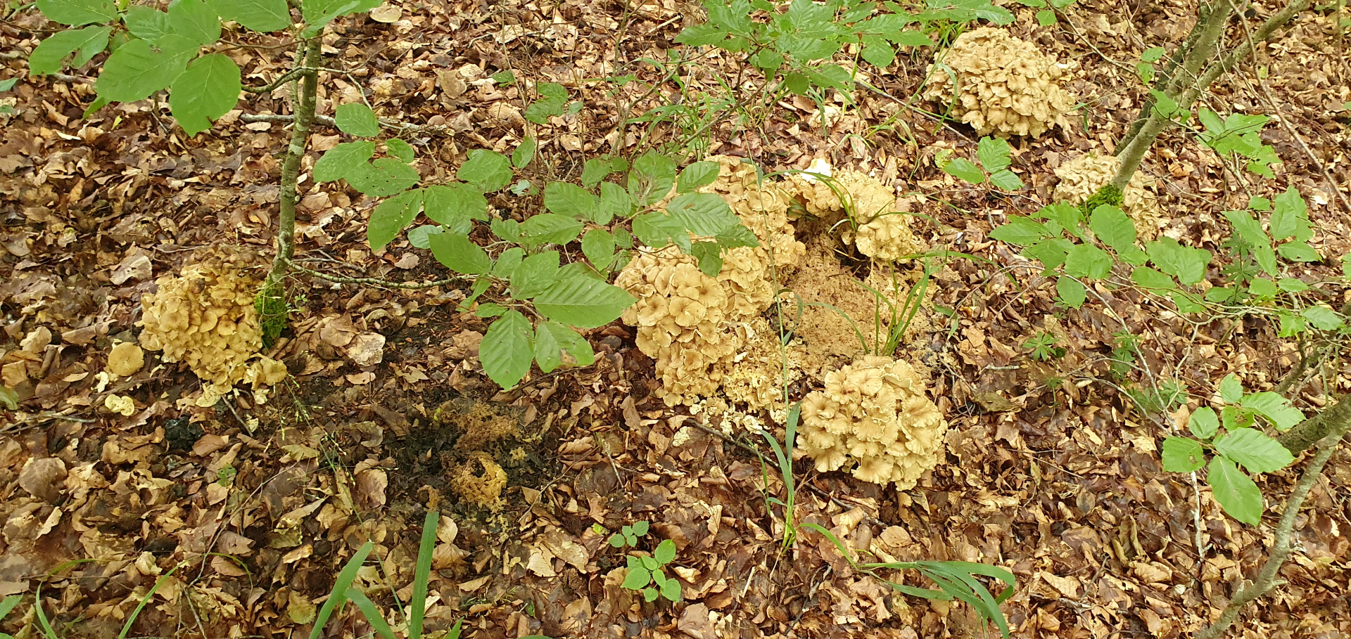 Zum Abschluss noch ein paar Winzlinge, die aber vermutlich mal größer werden wollen, an einer Stelle viele kleine Büschel mit winzigen Köpfchen von Cantharellus tubaeformis: