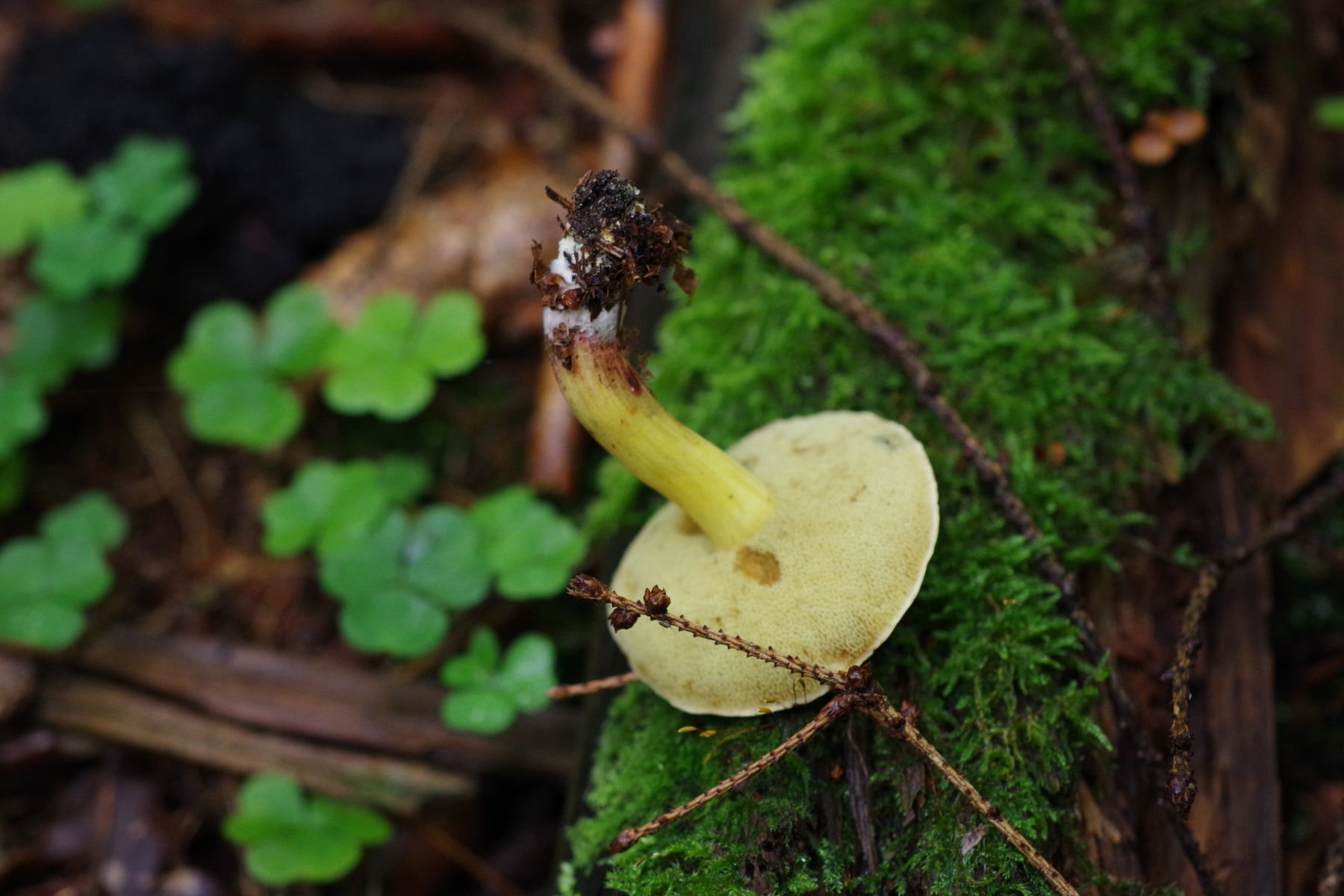 welches Rotfüßchen darf denn solche gelben Stiele haben? Das ist die Art, die ich kürzlich mit Goldschimmel gezeigt hatte ( 2x Hypomyces ).