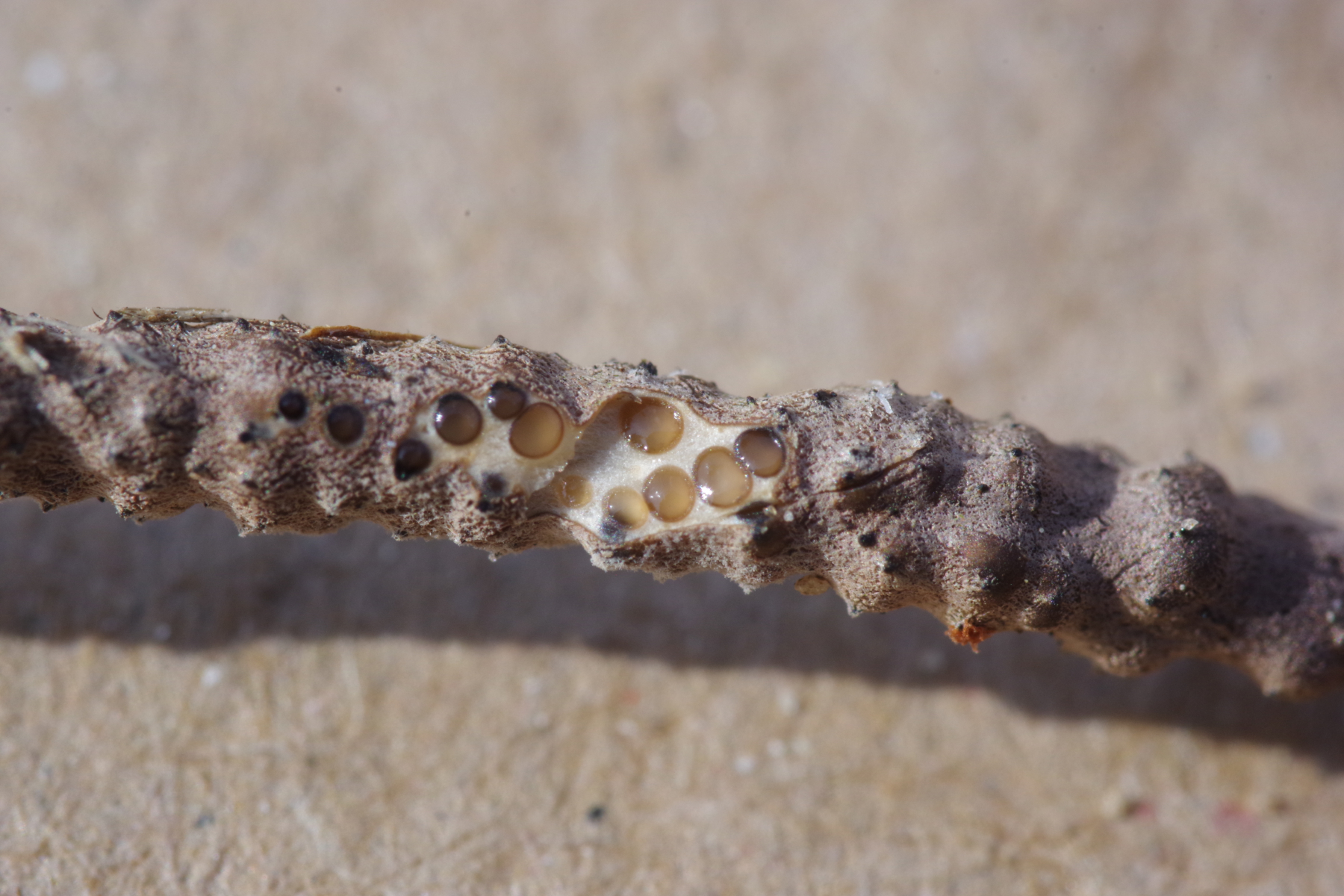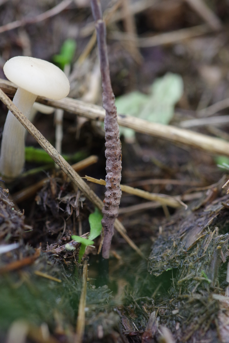 Hallo, wieder auf der Weide, an/unter älterem Pferdemist habe ich dieses Objekt gefunden. Nur ein Einzelstück, deswegen bisher nicht angeschnitten oder ausgegraben. Wirkt zunächst, vor allem farblich, wie eine Xylaria, aber wenn ja welche? Das Ganze ist etwa 7 cm lang und an der dicksten Stelle so um die 4 mm dirck. Ziemlich ausgeprägt der Übergang von schwarzem Stiel, su grauem Hut. Ganz ausschließem möchte ich trotzdem nicht, dass es ein Halm von irgendetwas mit Pilzbefall ist - eher der Vollständigkeit halber, als dass ich das momentan glauben würde.