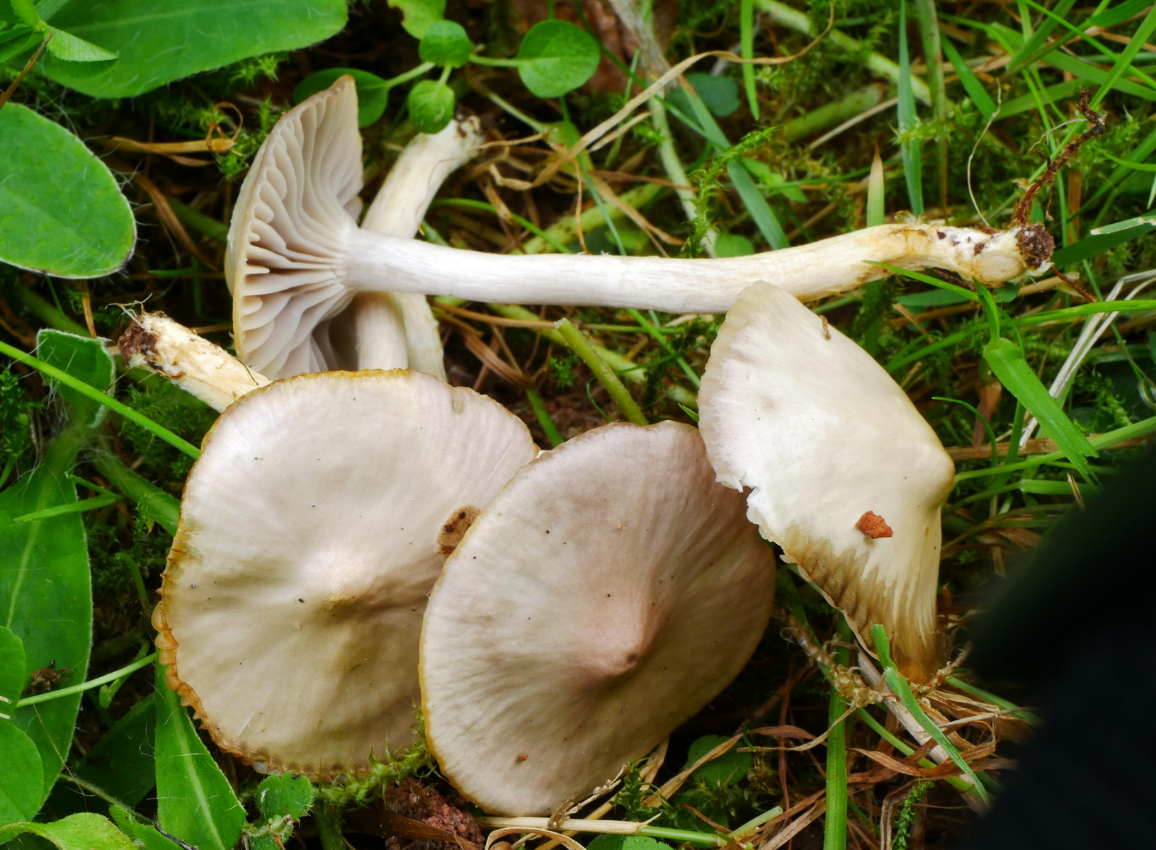 Lamellen grau , untermischt , etwas am Stiel herablaufend.
