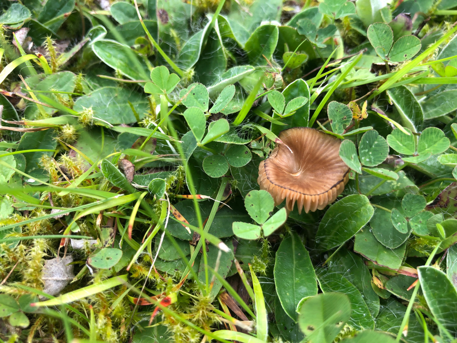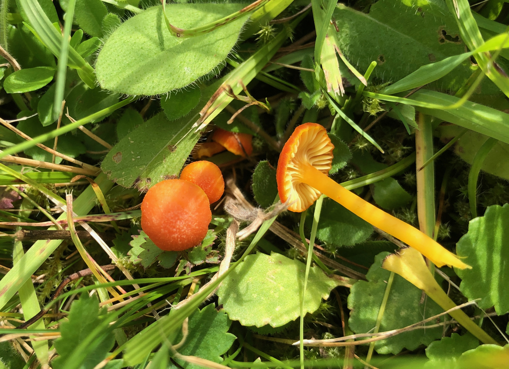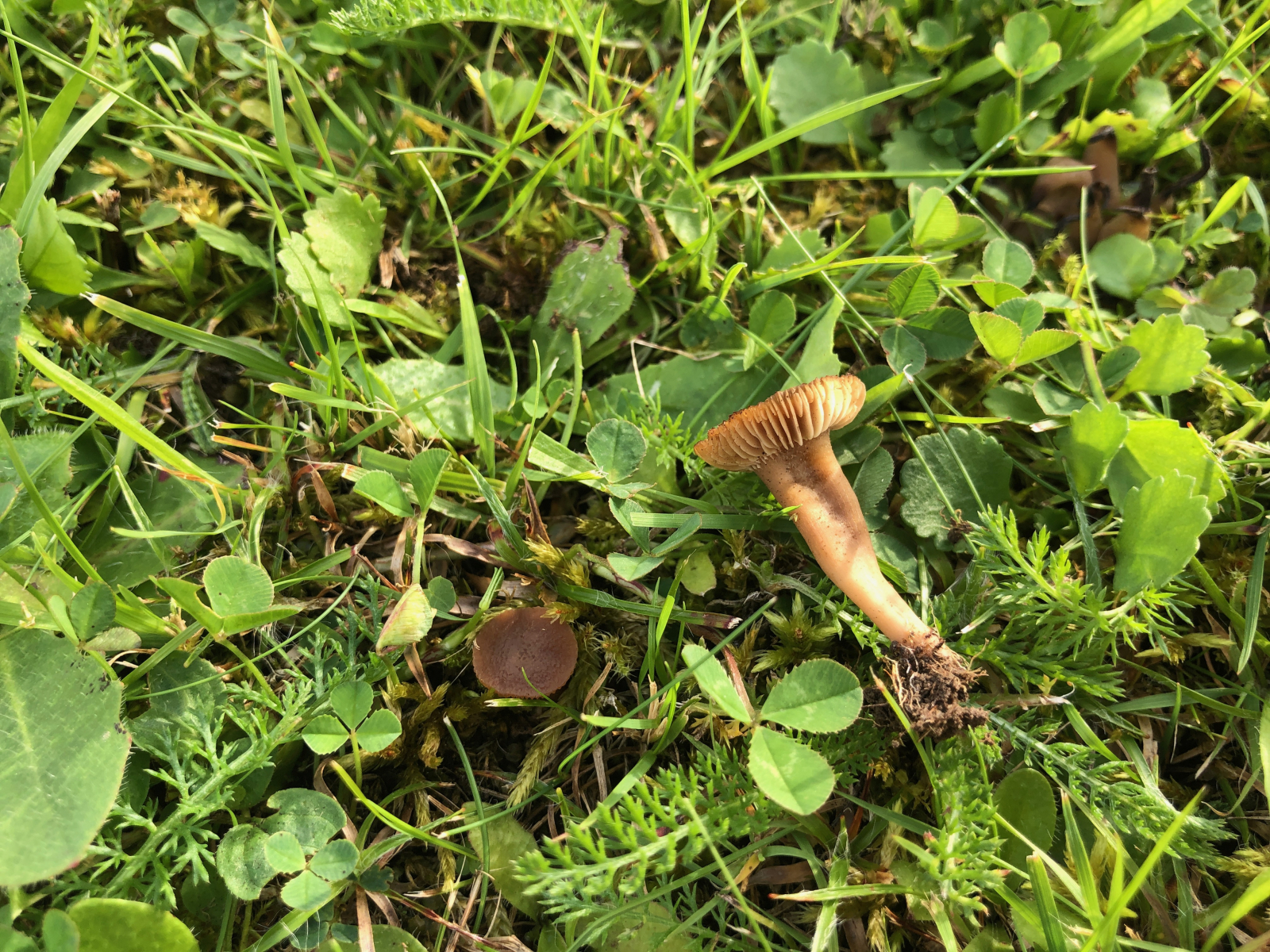 Pilz 2 ist der mutmaßliche Rübling. der sich dank der Nachhilfe von Werner als Nitratsaftling - Hygrocybe nitrata entpuppt hat.