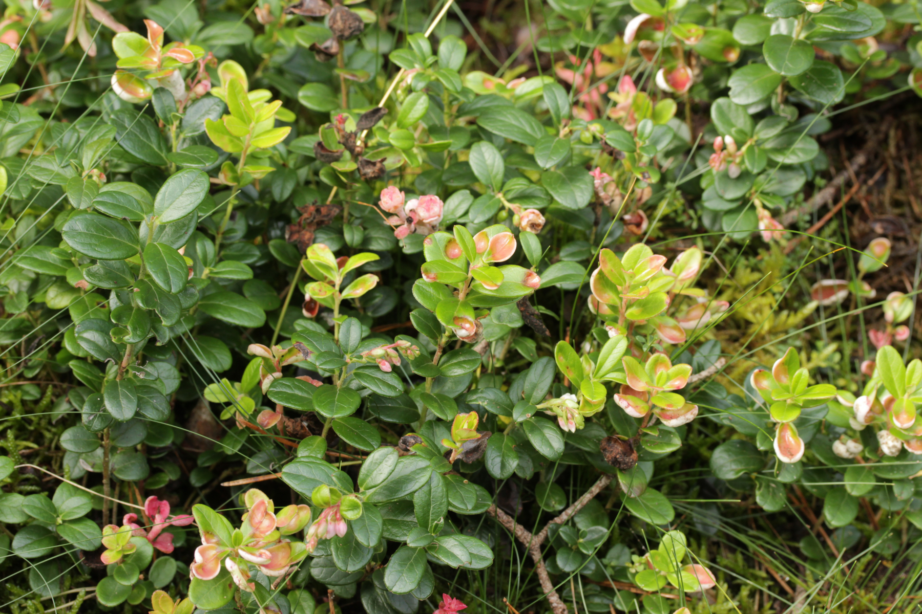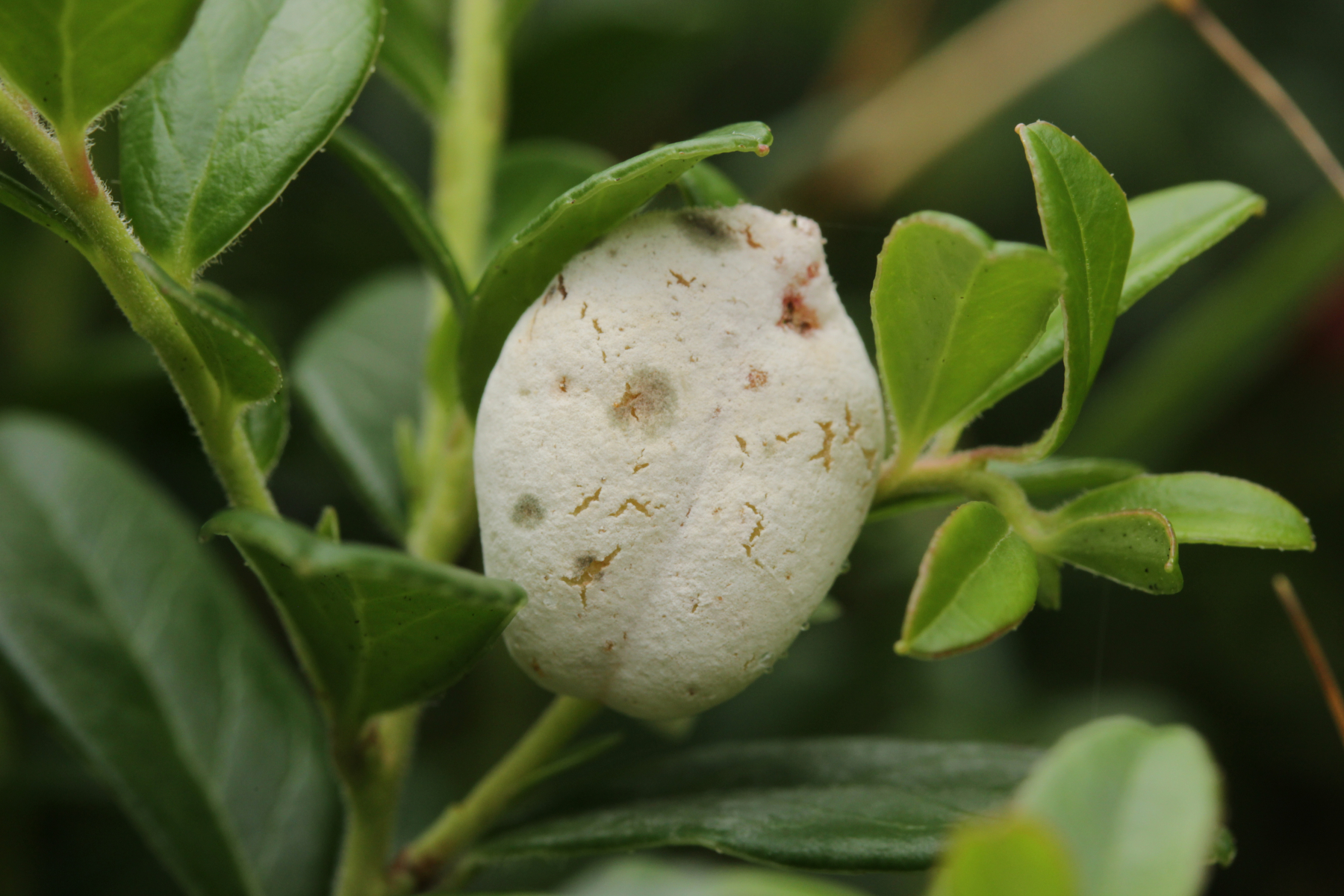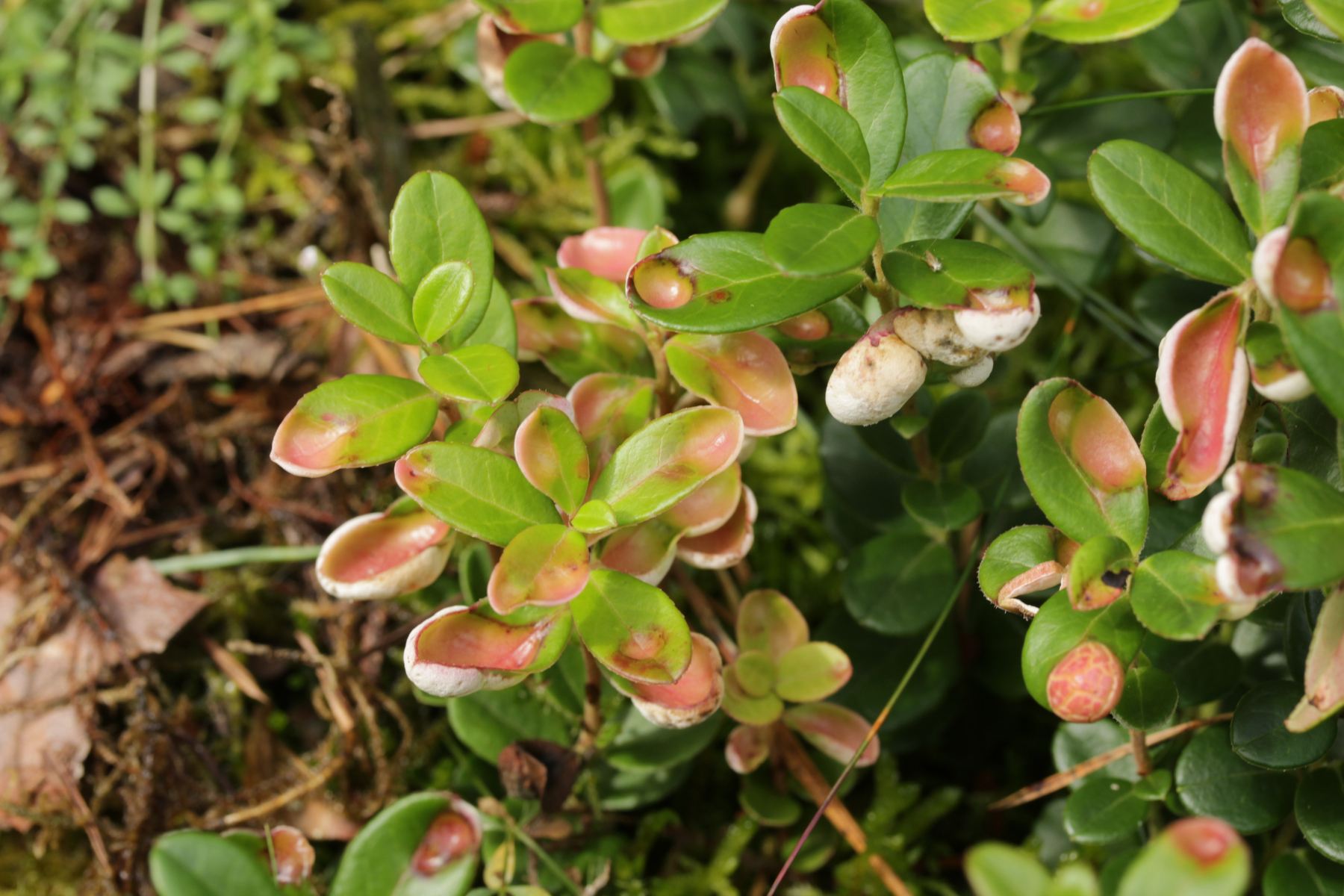 4. Exobasidium vaccinii ex Vaccinium vitis-idaea, zum Teil von Cladosporium exobasidii befallen