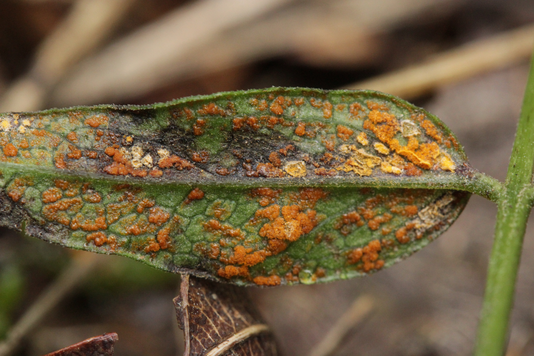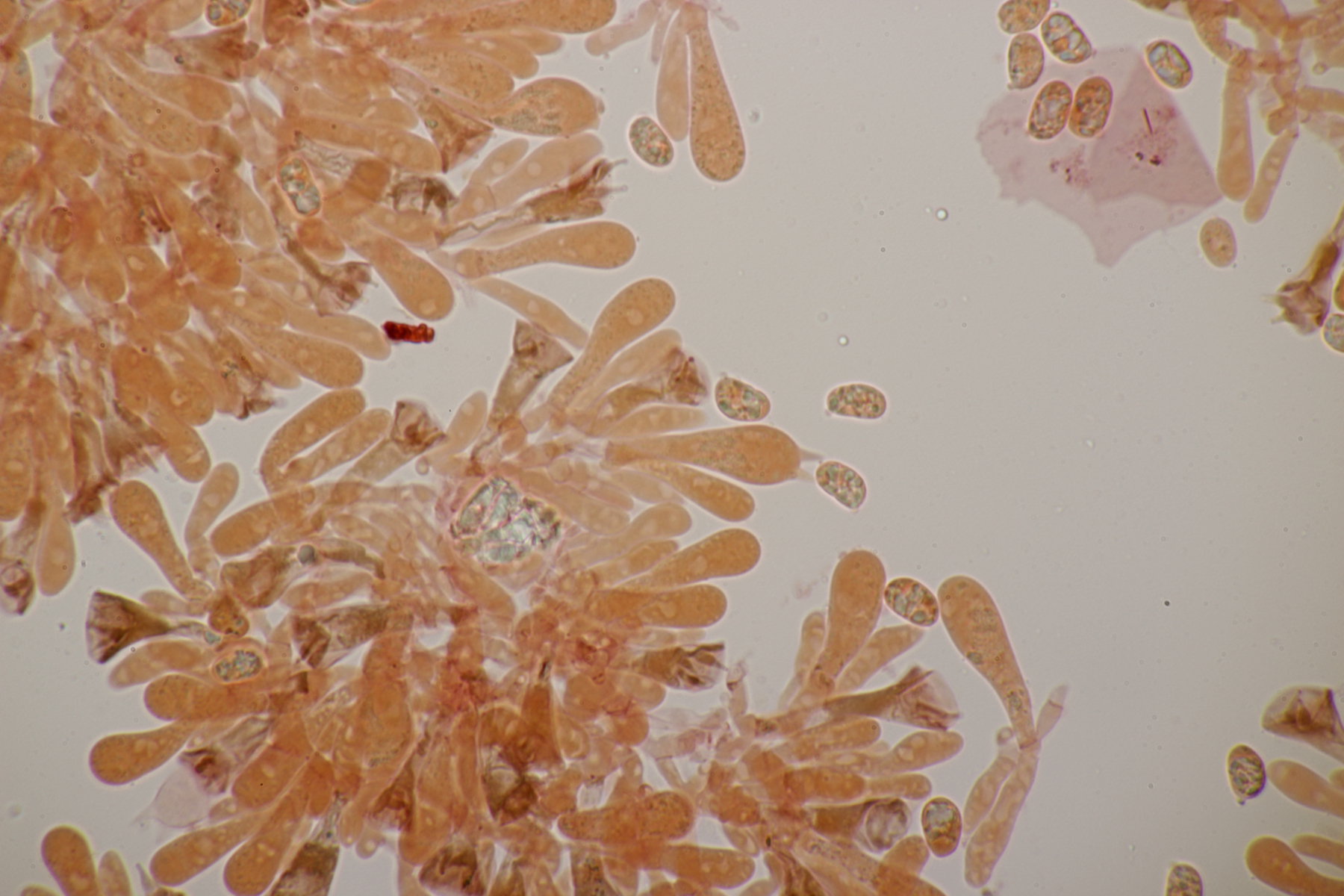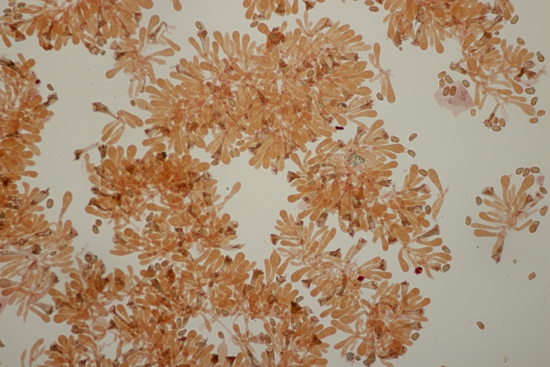 2. Exobasidium rostrupii ex Vaccinium oxycoccos. Im Mikro zeigte sich dann auch noch Podosphaera myrtillina