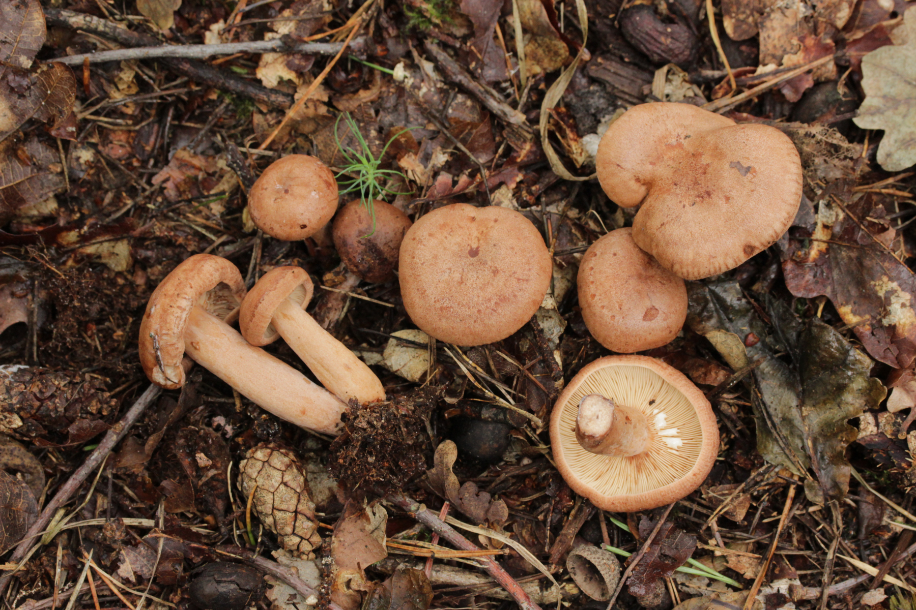 8. Ein Milchling unter Pinus und Quercus, Milch nicht gilbend, zunächst mild, dann leicht scharf schmeckend, Geruch nach Blattwanze. Insgesamt lande ich dann bei Lactariun quietus
