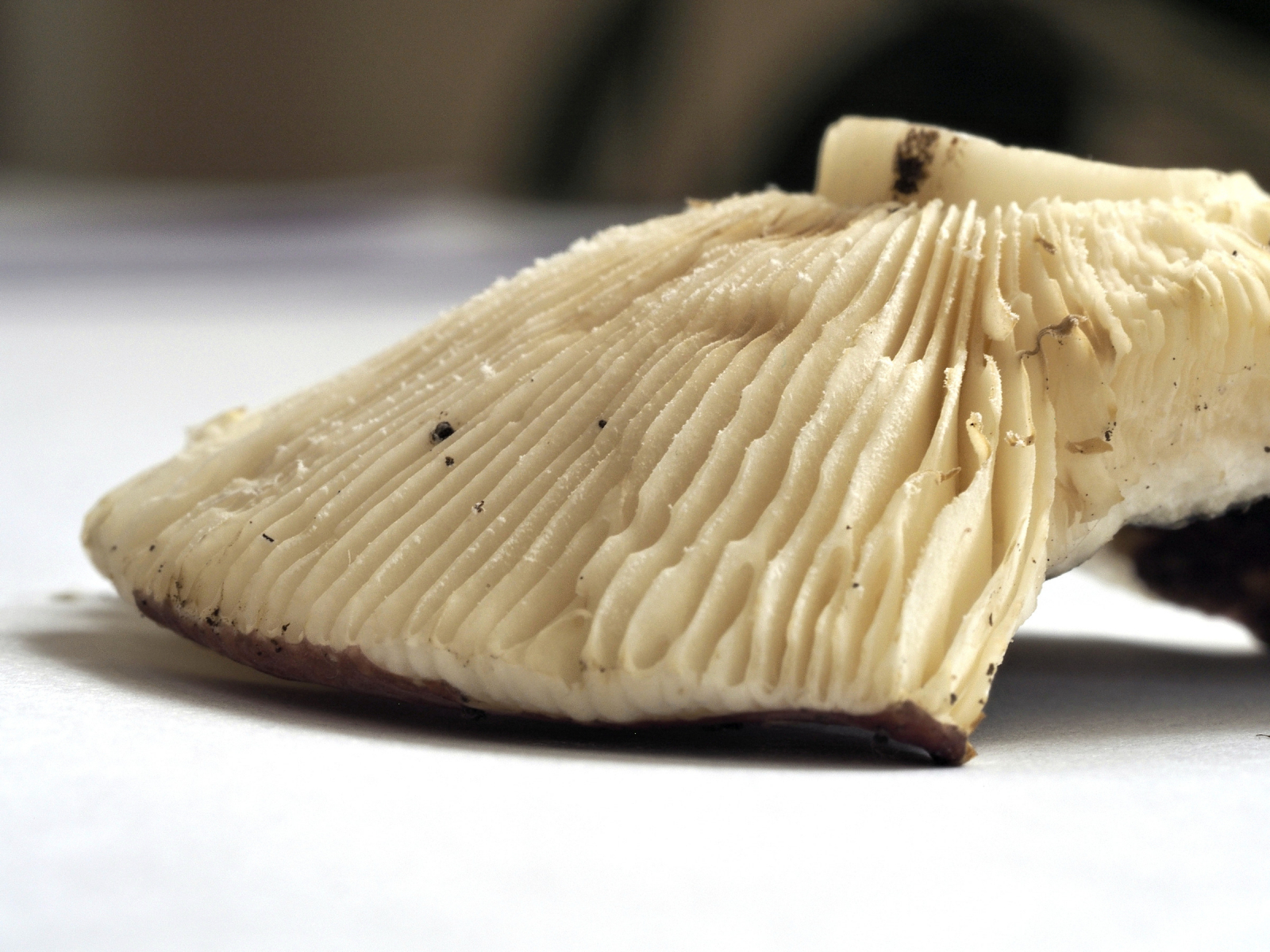 LAMELLEN, spröde, weiss bis creme, rel eng-stehend, Y-gabelig,