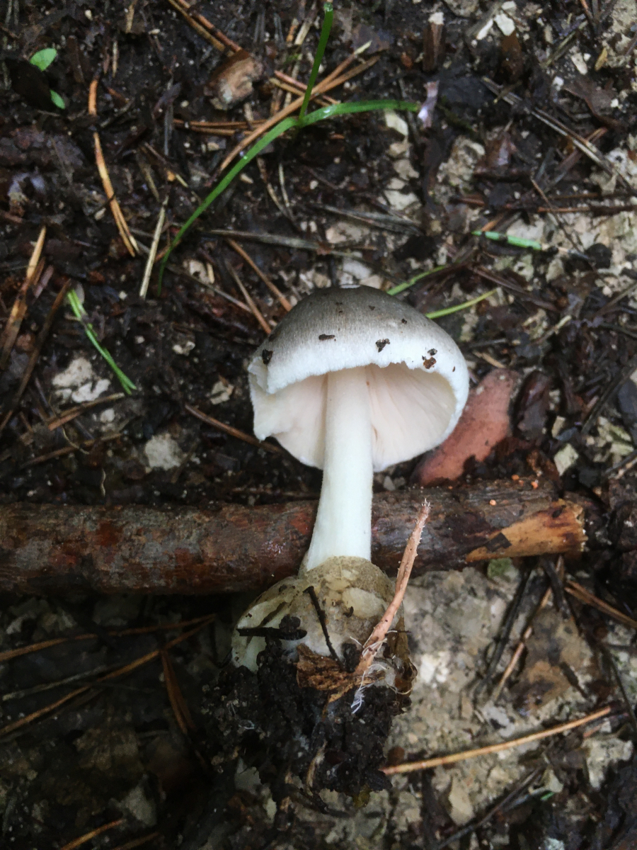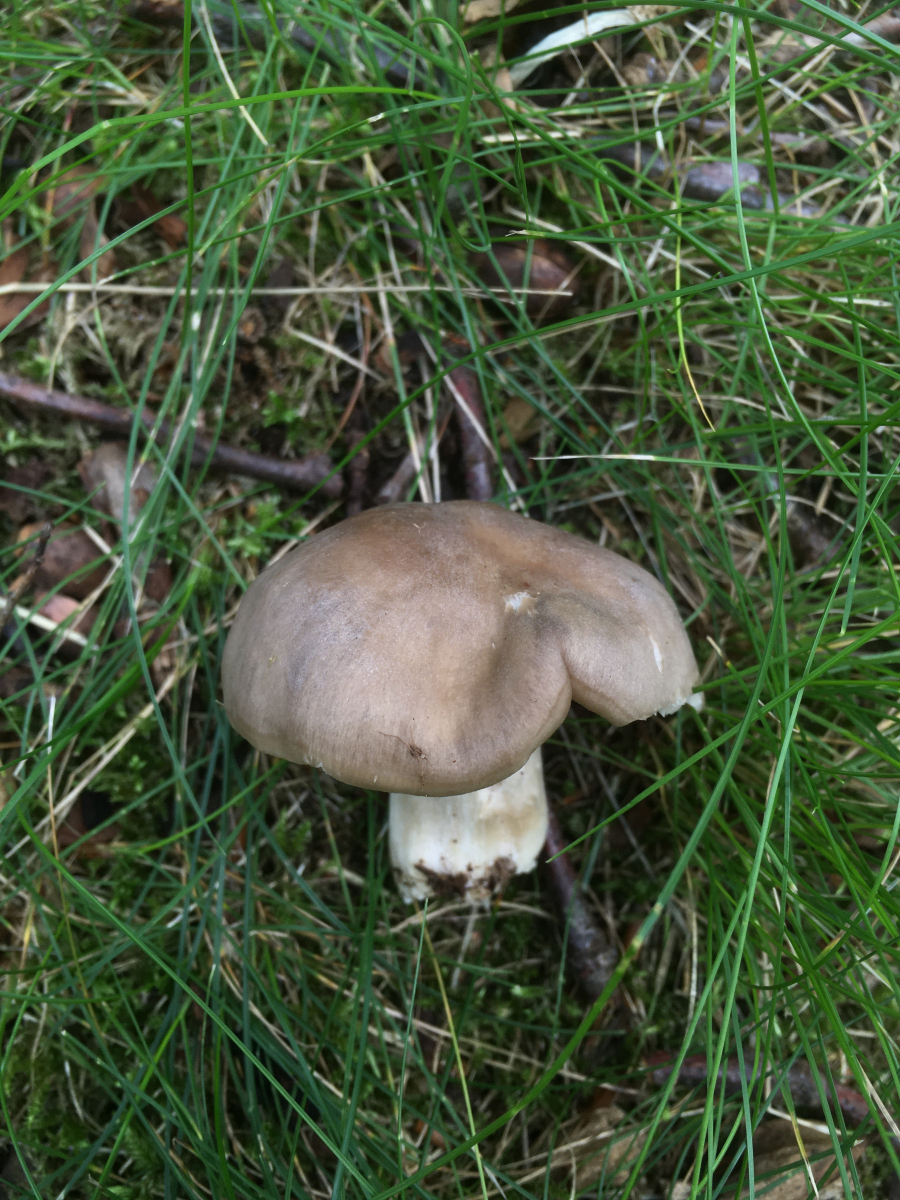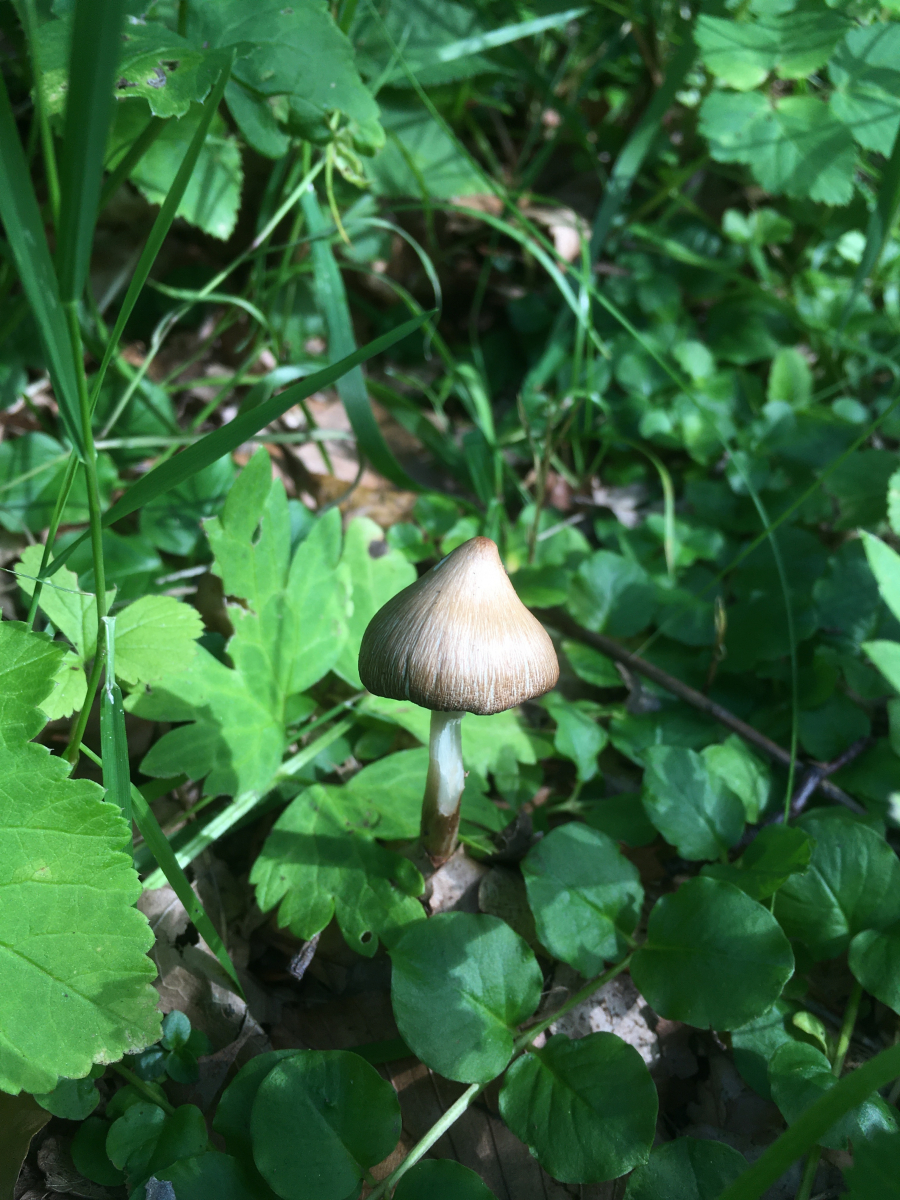 1) vor ca 8Wochen, damals nach viel Regen, am Wegesrand bei Buche, Hainbuche und Eiche, ein kleiner großer Scheidling (Volvopluteus gloiocephalus)?