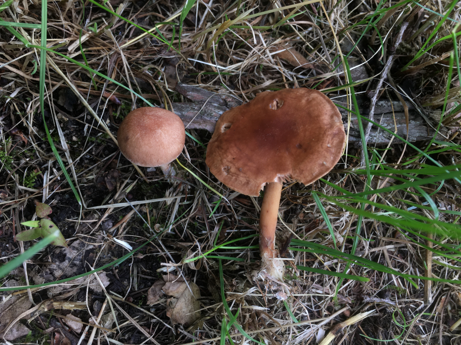 2) ebenfalls Wegesrand bei Weisstanne und Eiche: brennender Rübling (Gymnopus peronatus)? Geschmack im Vergleich zu den Milchlingen weiter unten allerdings nur leicht scharf?