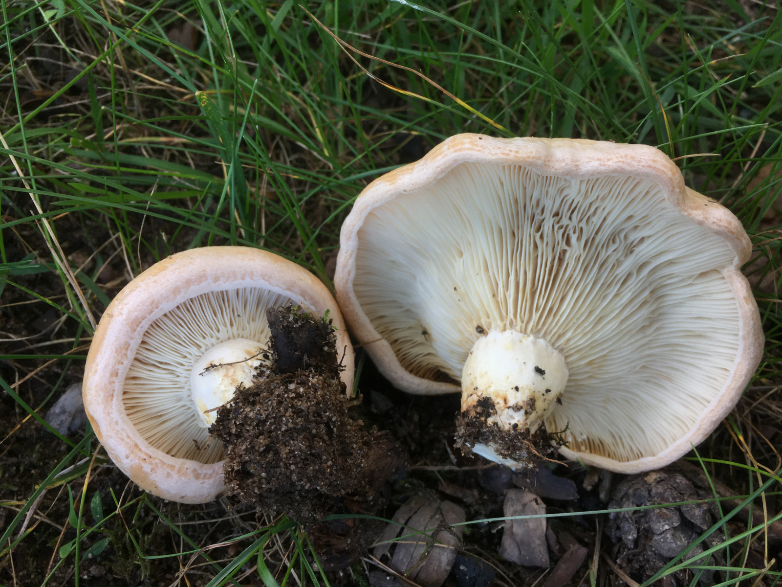 4) Milchlinge unter Eiche, sehr magerer Sandboden, Geschmack ordentlich scharf (7/10) , Lamellen in Stielnähe teils queraderig, das kann aber vermutlich bei einigen Arten mal vorkommen. Milch weiss, keine Farbänderung nach 10min. Der seltene "queraderige Milchling (Lac. acerrimus)" wirds wohl eher nicht sein. Jemand noch eine Idee?