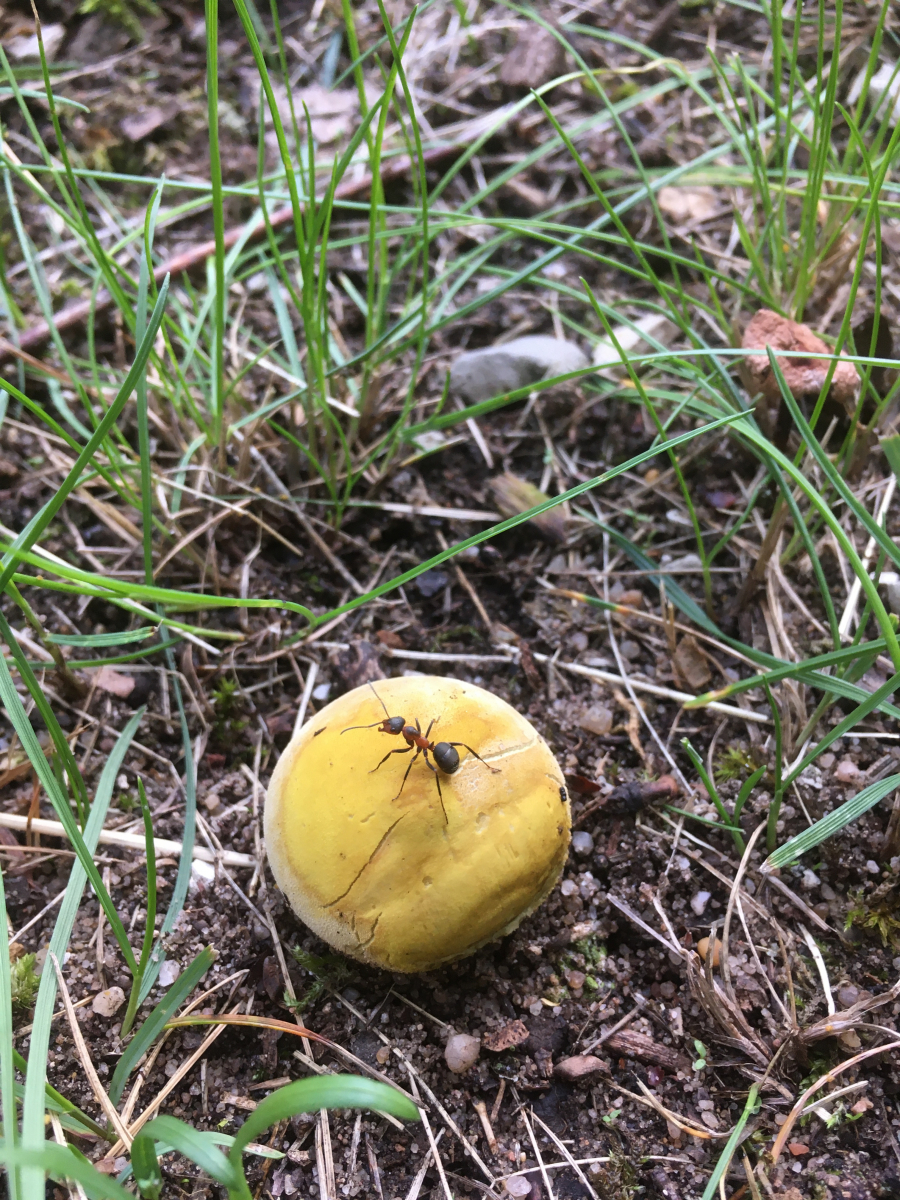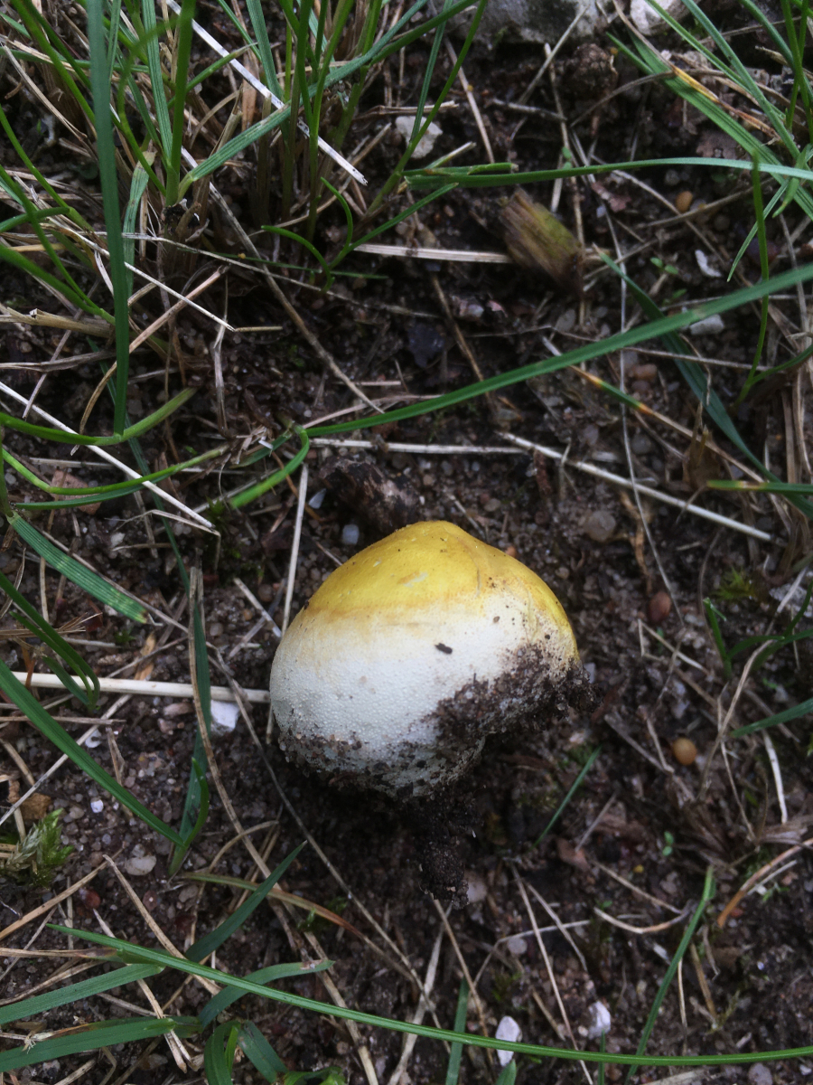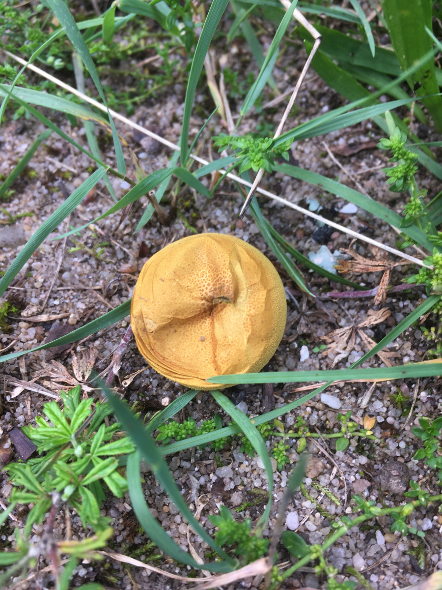 6) ein Stäubling mit schön gelber Peridie- oder ist das evtl ein Befall? im Park auf Sandboden.
