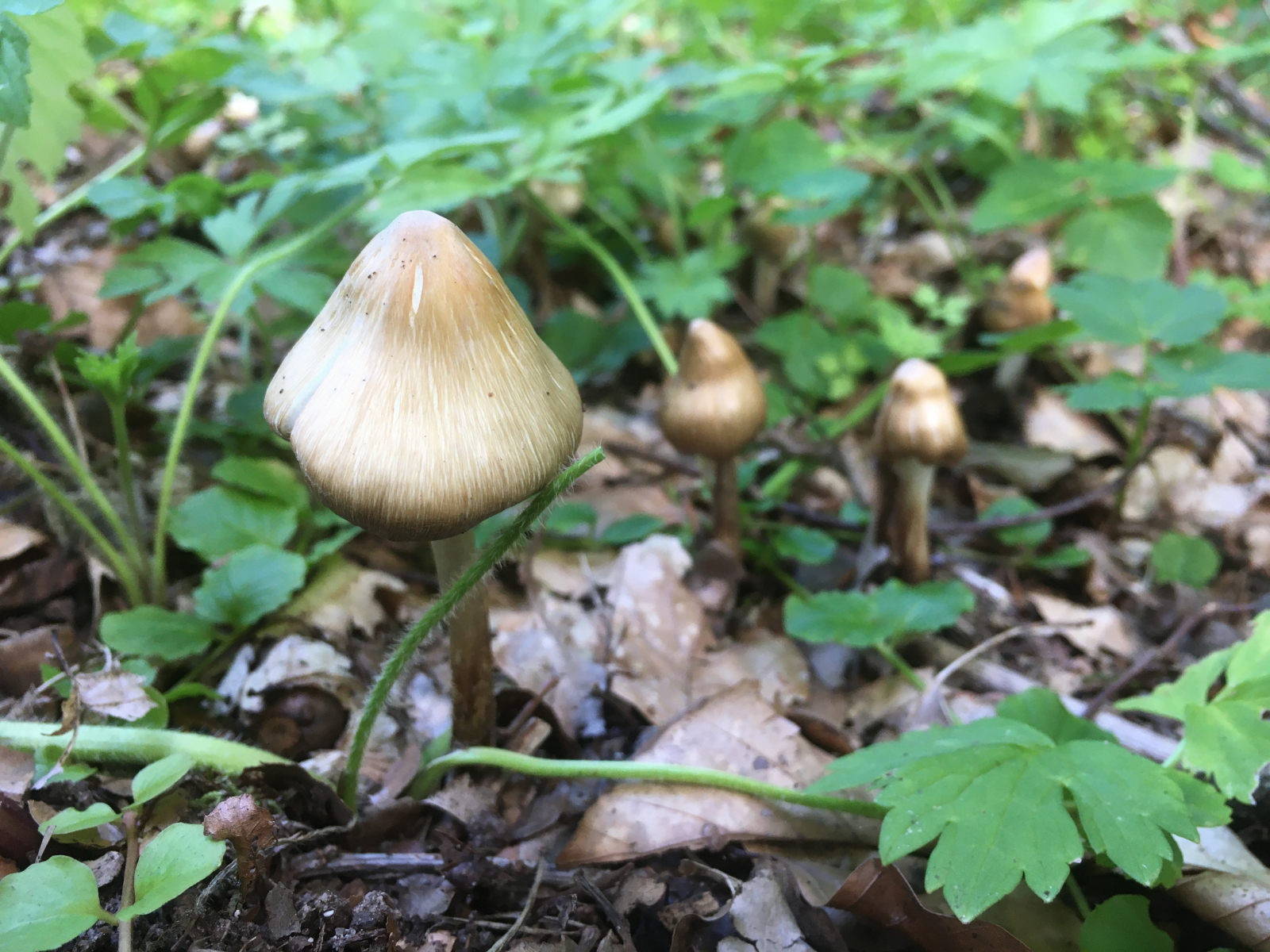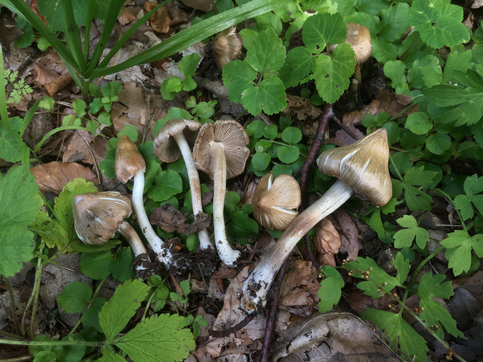 9) zu guter Letzt eine Gruppe wunderschöner Risspilze unter Buche und Eiche auf Sandboden am Wegesrand (Kalkeinfluss möglich), Geruch für mich nach Karokaffee (habe ich aber seit meiner Kindheit nicht mehr getrunken daher bin ich nicht wirklich sicher, jedenfalls nicht unangenehm), hier hab würde ich den von Matthias hier ebenfalls angefragten (ich erlaube mir das mal zu verlinken, da bisher noch keine Antwort kam) kegeligen Risspilz (Pseudosperma rimosum) in Erwägung ziehen.