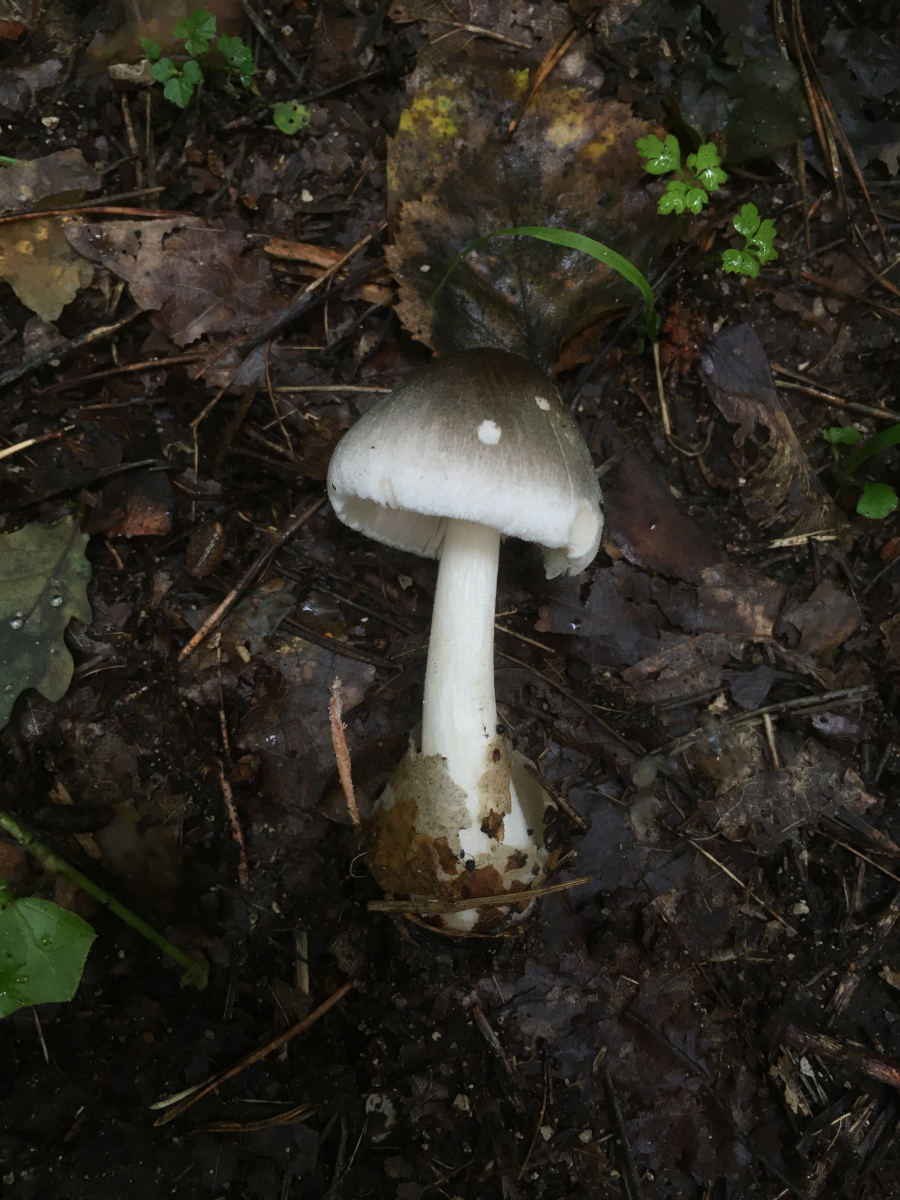 1) vor ca 8Wochen, damals nach viel Regen, am Wegesrand bei Buche, Hainbuche und Eiche, ein kleiner großer Scheidling (Volvopluteus gloiocephalus)?