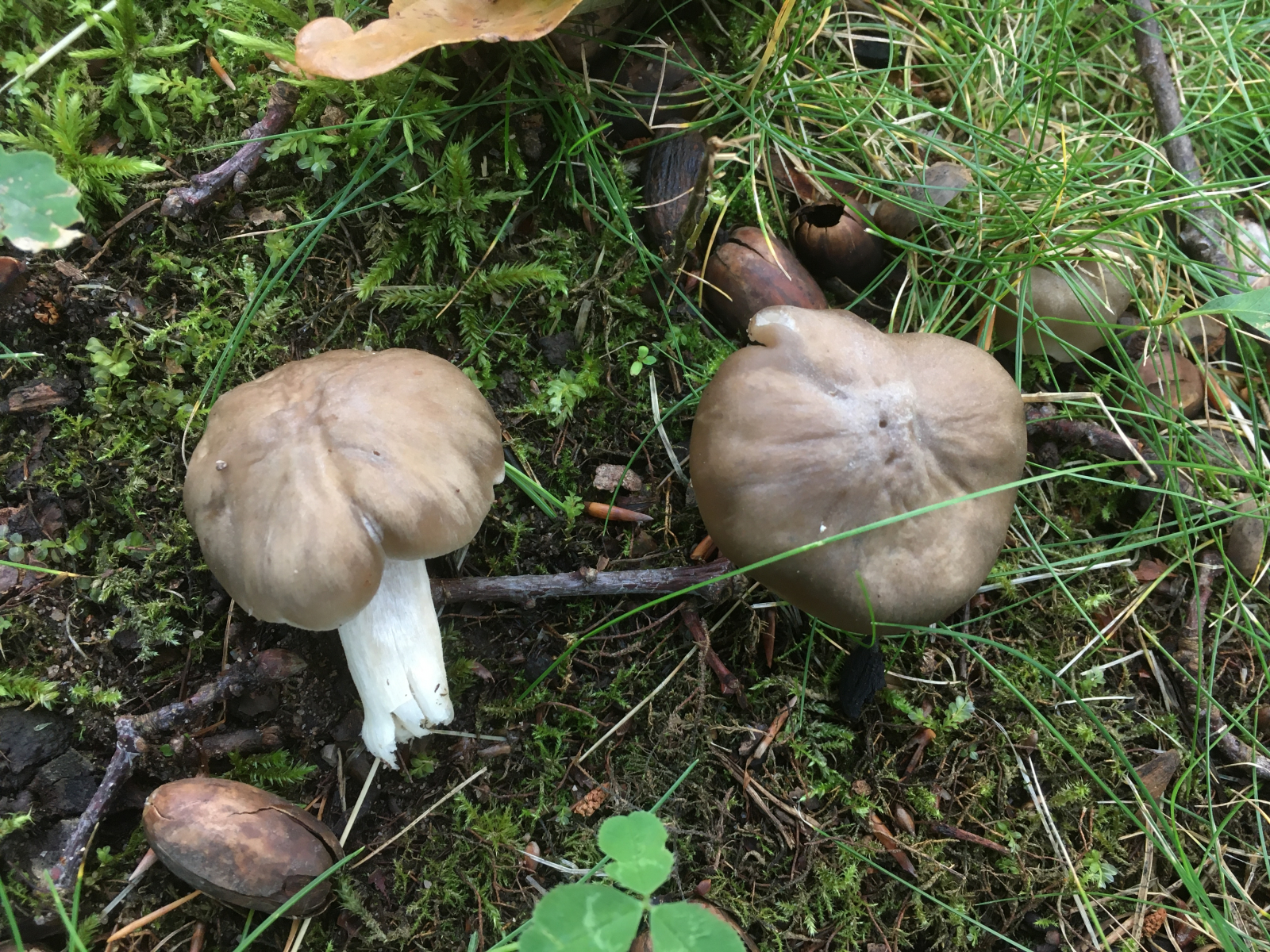 2) ebenfalls Wegesrand bei Weisstanne und Eiche: brennender Rübling (Gymnopus peronatus)? Geschmack im Vergleich zu den Milchlingen weiter unten allerdings nur leicht scharf?