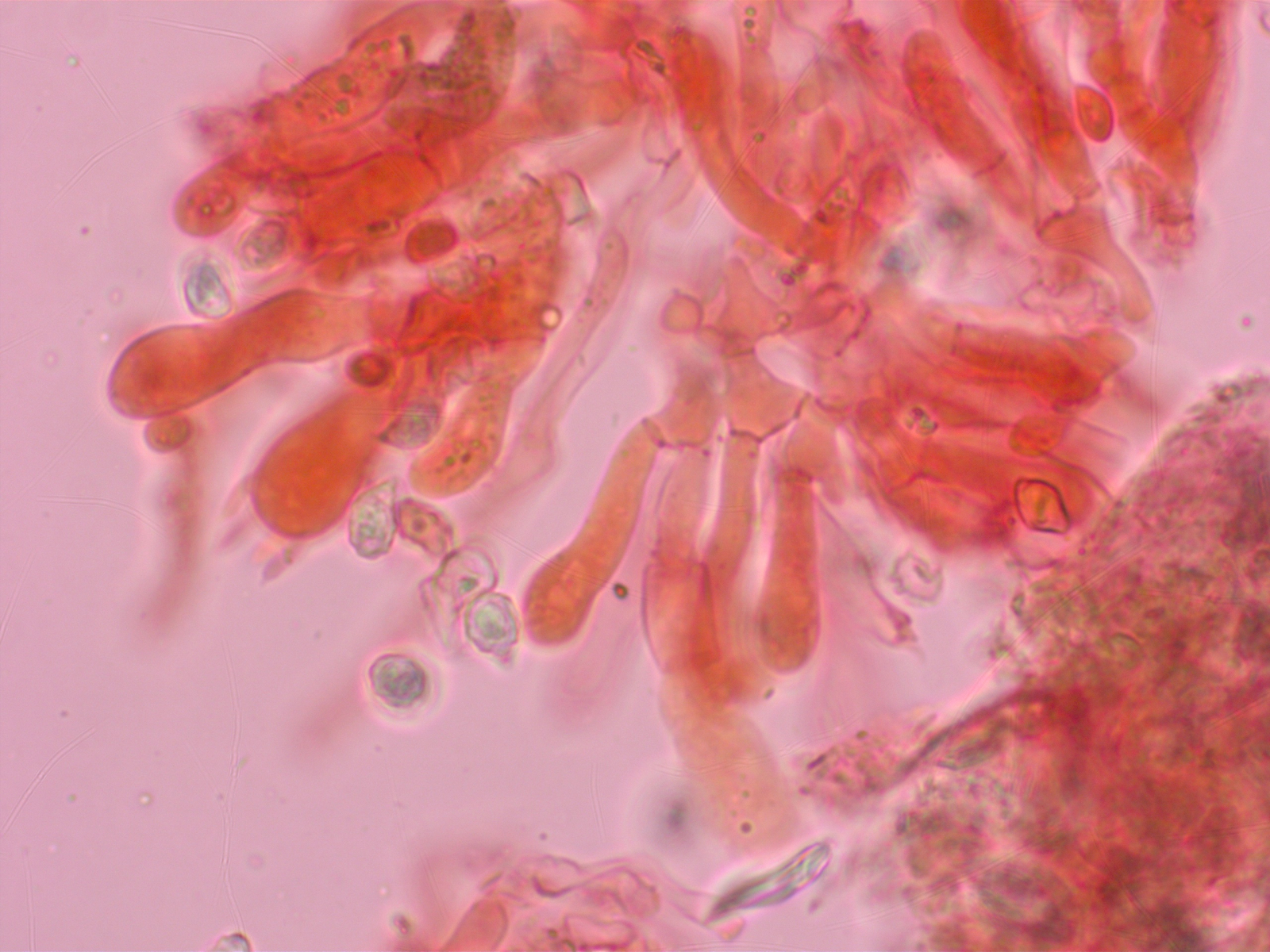 Basidien 4-sporig, ohne Basalschnallen (habe wirklich sehr lange gesucht...)