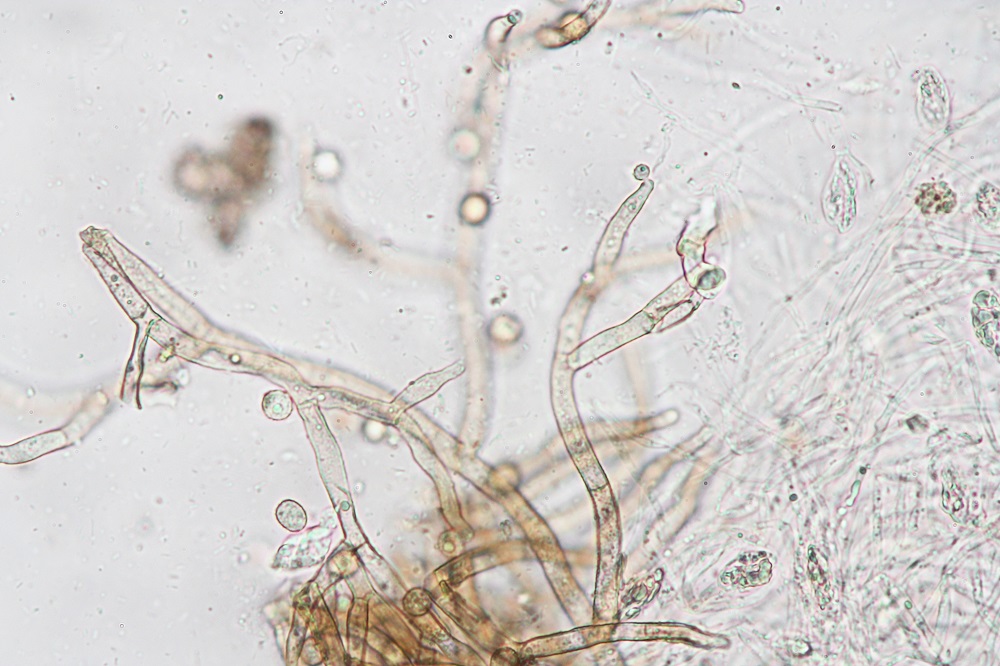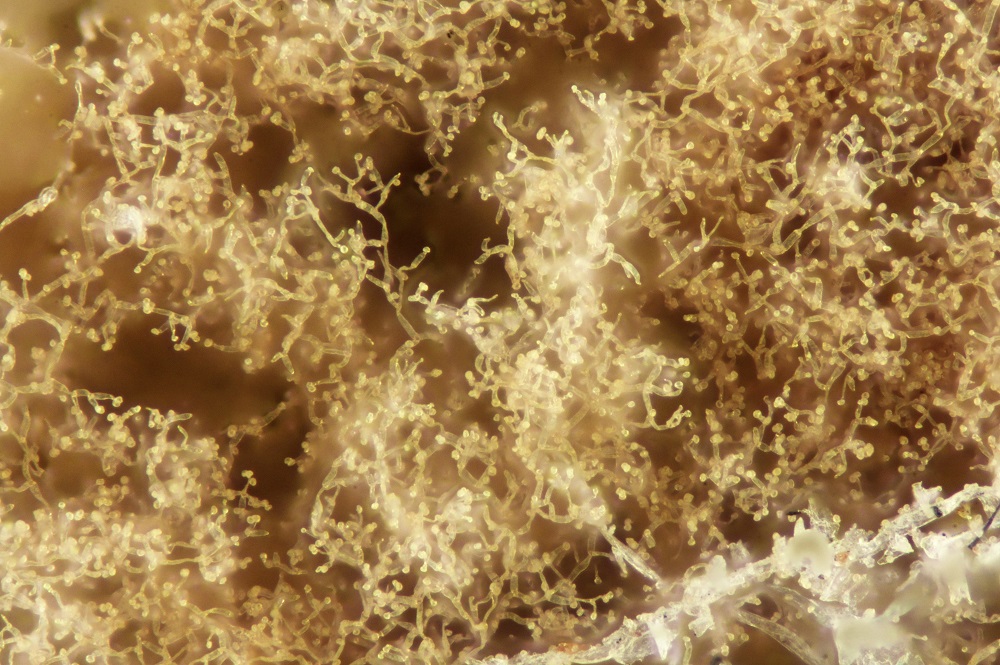 vorgestern (09.08.2021) konnte ich im Wald wieder eine interessante Anamorphe finden, die an den Wurzeln von Pflanzen, aber auch auf Holzstückchen wächst.