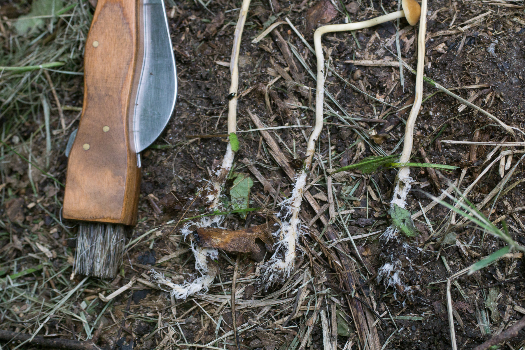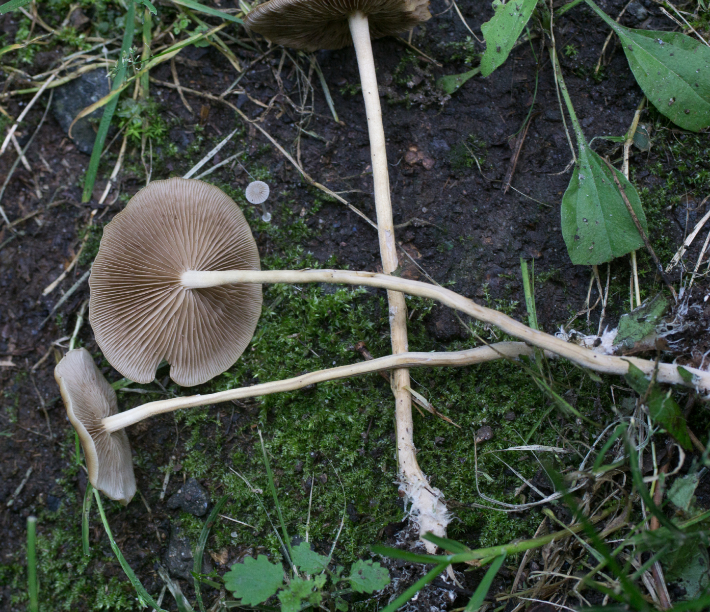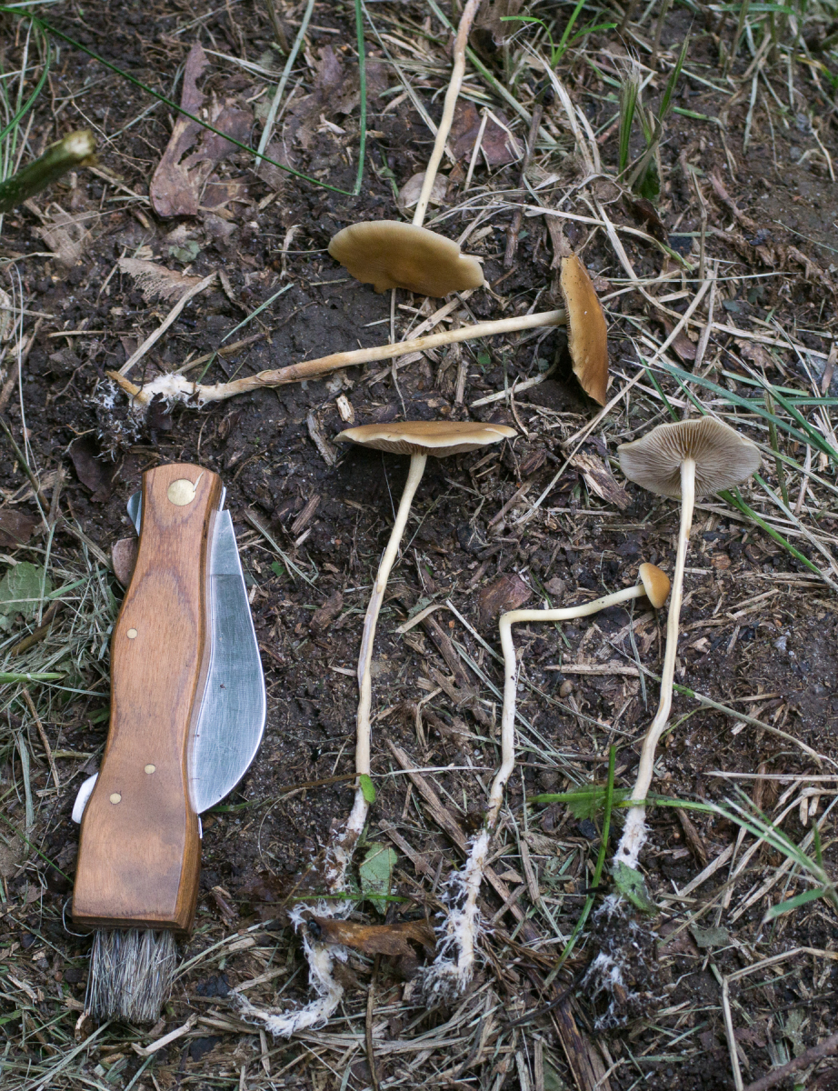 Ziemlich große, dünnstielige Pilze mit gräulichen Lamellen und runzeligem Hut. Erinnert daher ein wenig an Langunddünn, wie Wutzi auch bemerkte. Ich hatte im Feld dann schonmal fix gegoogled ob Agrocybe arvalis, der mir als erstes einfiel passen könnte. Ein Sklerotium konnte ich aber leider nicht finden, obwohl ich sie recht tief gerüpft habe. Irgendeine komische Hypholoma wäre meine Alternativ-Idee gewesen.