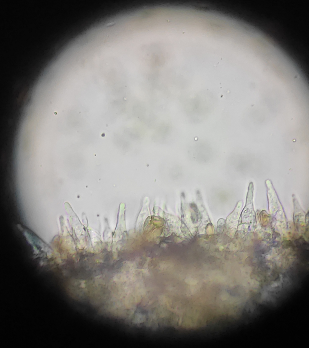 Die sehen aber irgendwie nicht so aus, wie Ludwig und die FN sie abbilden oder sie hier gezeigt werden und das verwirrt mich nun. Ludwig schreibt aber auch "selten ohne" - ich glaube das bezieht sich auf die fingerförmigen Auswüchse. Habe ich nun hier gar keine Pileozystiden abgebildet, eine fingerlose Version erwischt oder einen ganz anderen Pilz? Eigentlich war ich mir fast schon sicher...