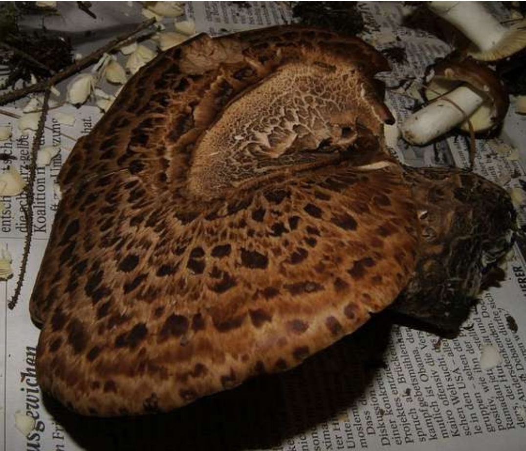 Bei Hannes Fund sind die Schuppen ja zur Spitze hin schmaler - und diese Spitzen dann auch noch aufgerichtet. Das passt zu Polyporus tuberaster (macht der immer so, ist ein sehr gutes merkmal um tuberaster und squamosus zu trennen). Auch die offensichtlich ganzrandigen Hüte passen eher zu tuberaster als zu squamosus, ebenso die dunklen Farben (wobei das eben auch sehr variabel ist). Nicht gut zu tuberaster passt dagegen die zu erahnende Struktur der Stieloberfläche auf dem ersten Bild. Die Fruchtkörper scheinen allerdings irgendwo im Substrat einen Größenwahnturbo (nicht so ungewöhnlich, tuberaster kann satt > 20cm breite Hüte bilden) gefunden zu haben, dann sieht eventuell die Stieloberfläche auch komisch aus.