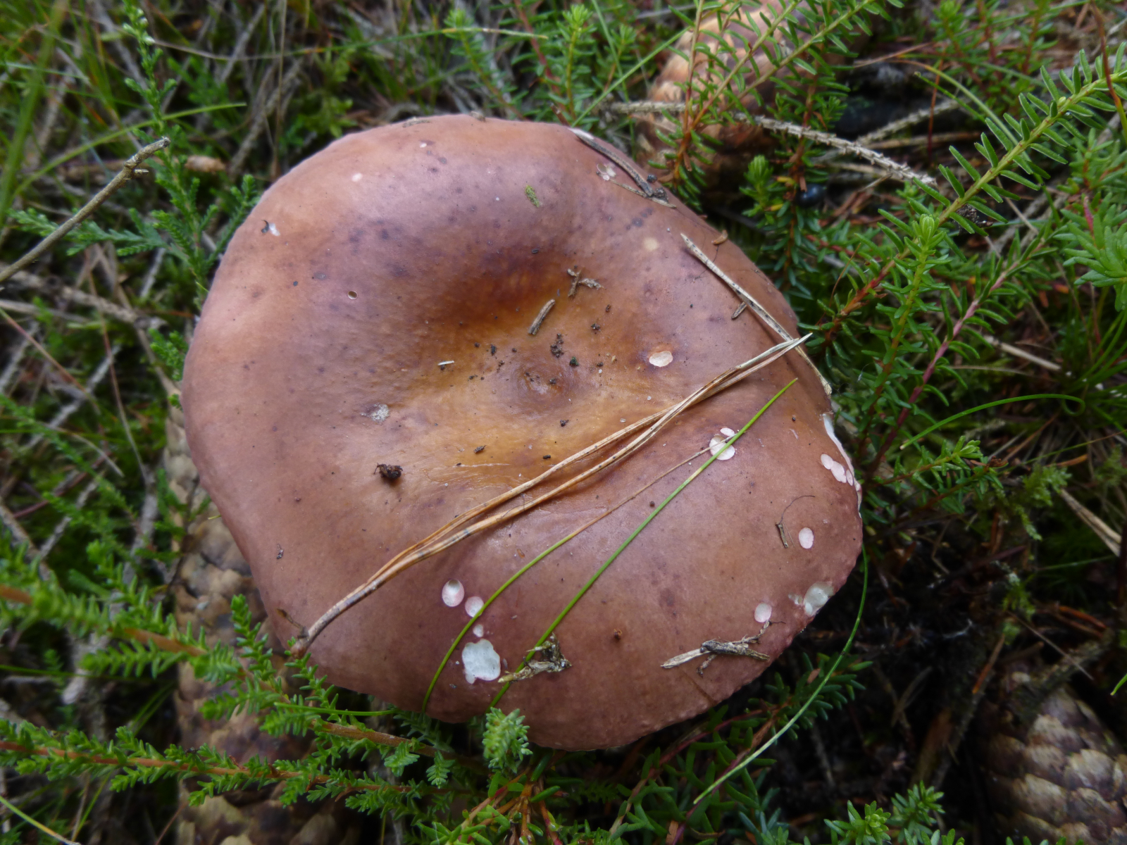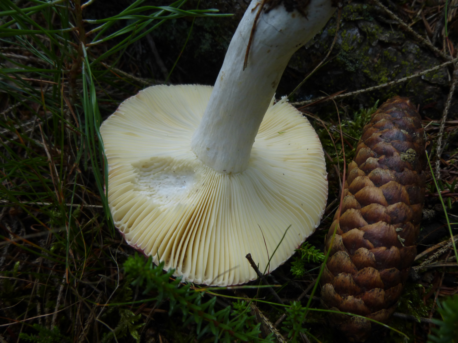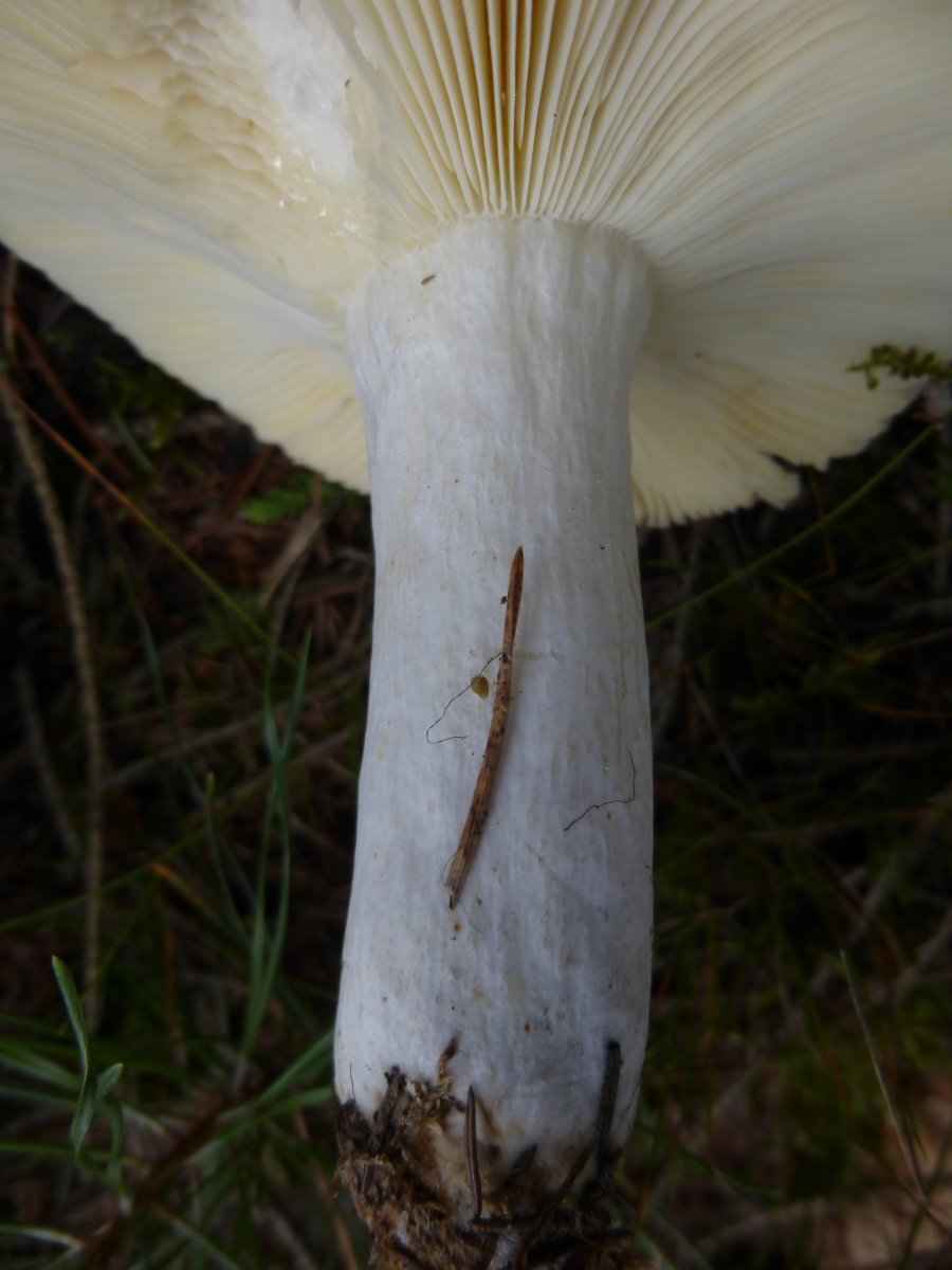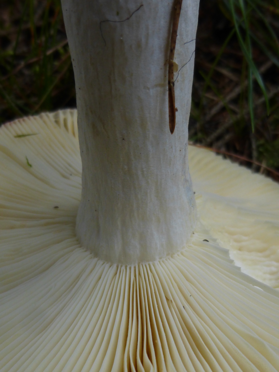Bei diesem Fruchtkörper ist's für mich schwer makroskopisch weiterzukommen. An Kandidaten denke ich an R. decolorans (Orangeroter Graustiel-Täubling) oder R. paludosa (Apfel-Täubling). Diese habe ich beide auch noch nicht in der Hand gehabt.