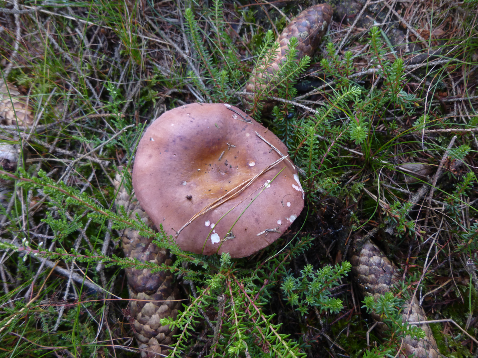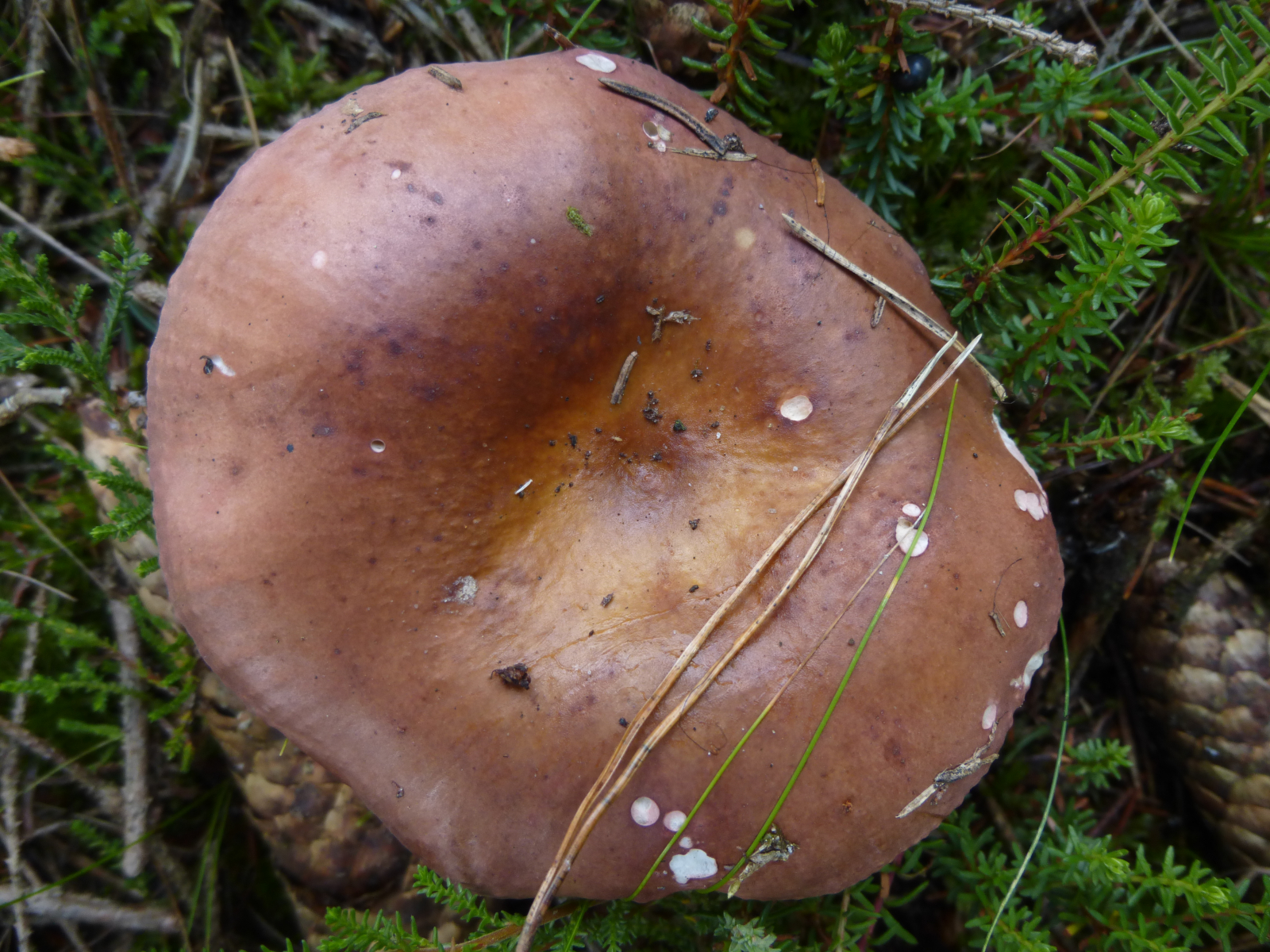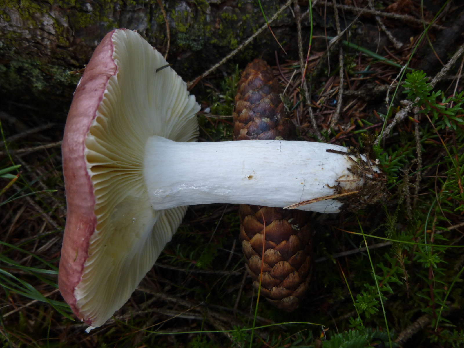 Bei diesem Fruchtkörper ist's für mich schwer makroskopisch weiterzukommen. An Kandidaten denke ich an R. decolorans (Orangeroter Graustiel-Täubling) oder R. paludosa (Apfel-Täubling). Diese habe ich beide auch noch nicht in der Hand gehabt.