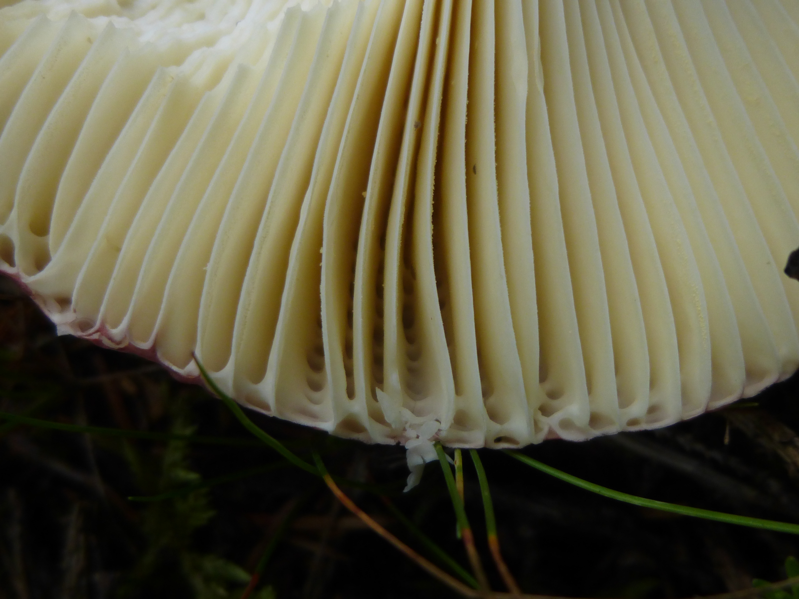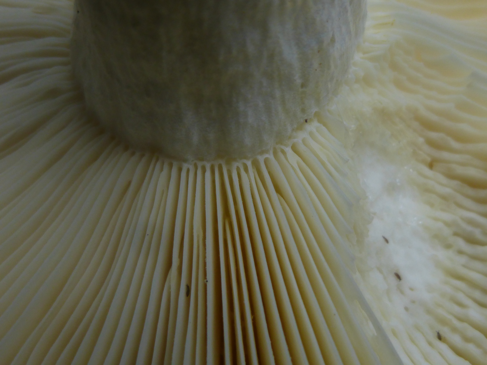 Lamellen: recht leicht splitternd, gelb und mit scharfem Auge zu sehen: an den Schneiden unregelmäßig beflockt