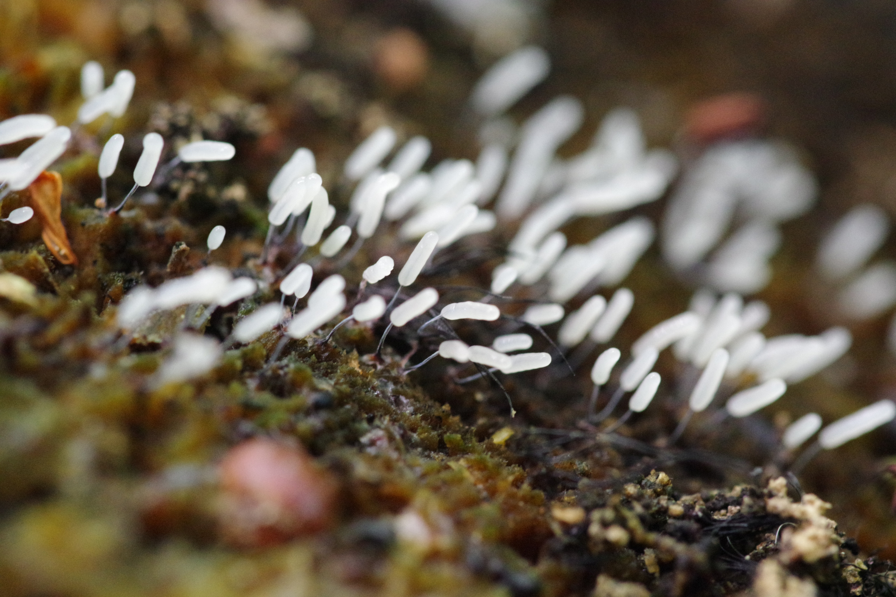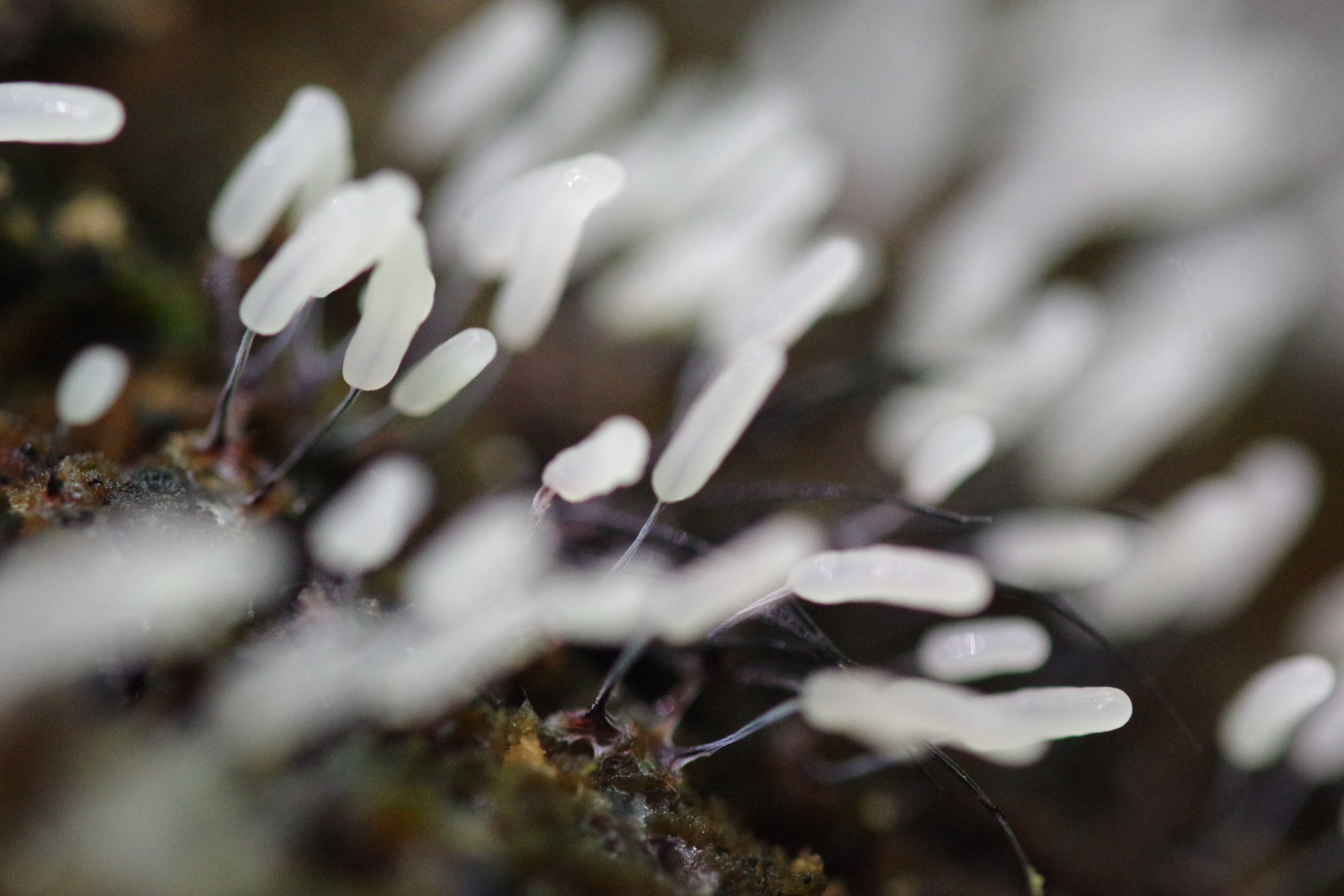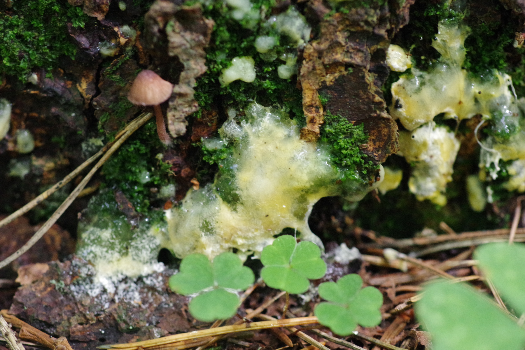 1) an Fichtenstubben habe ich derzeit an mehreren Stellen diesen gelben Schleimpilz, den ich als Ceratiomyxa fruticulosa var. poroides ansprechen würde. Teilweise am gleichen Stubben sogar mit der Normalvariante zusammen, die dann innen am morscheren Holz. Aber kann der denn auch gelb sein?