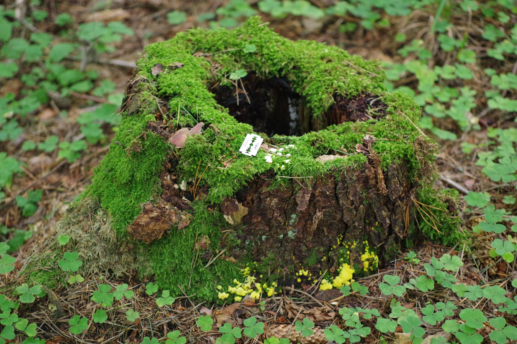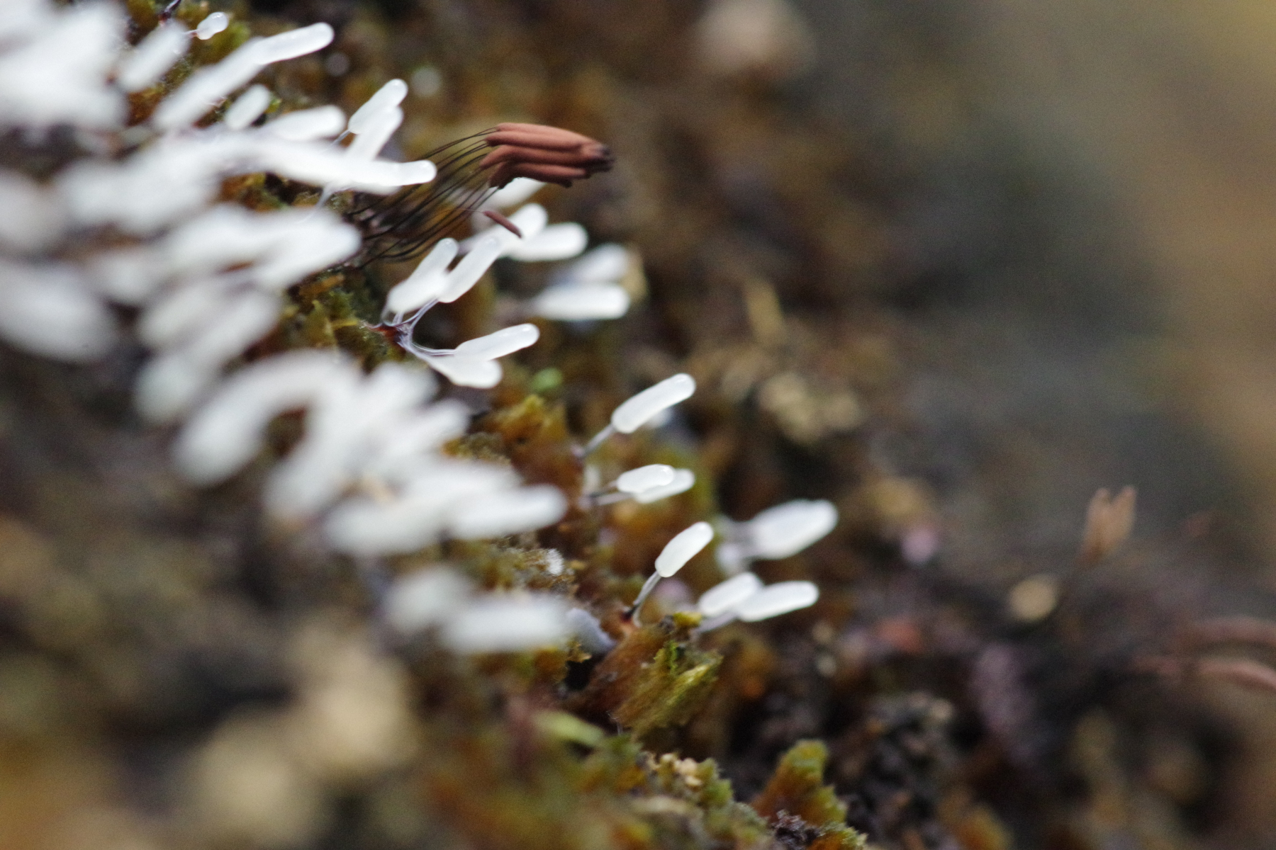 2) an einem anderen Fichtenstubben, diese weißen gestielten Schleimis
