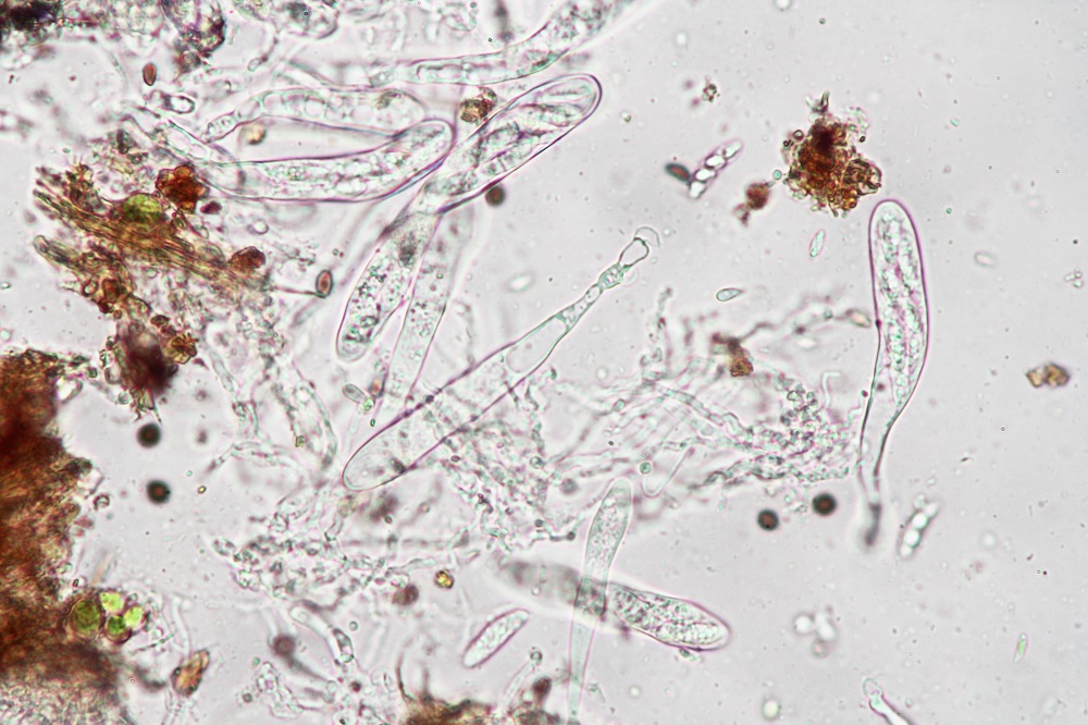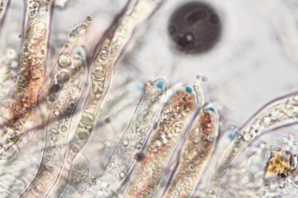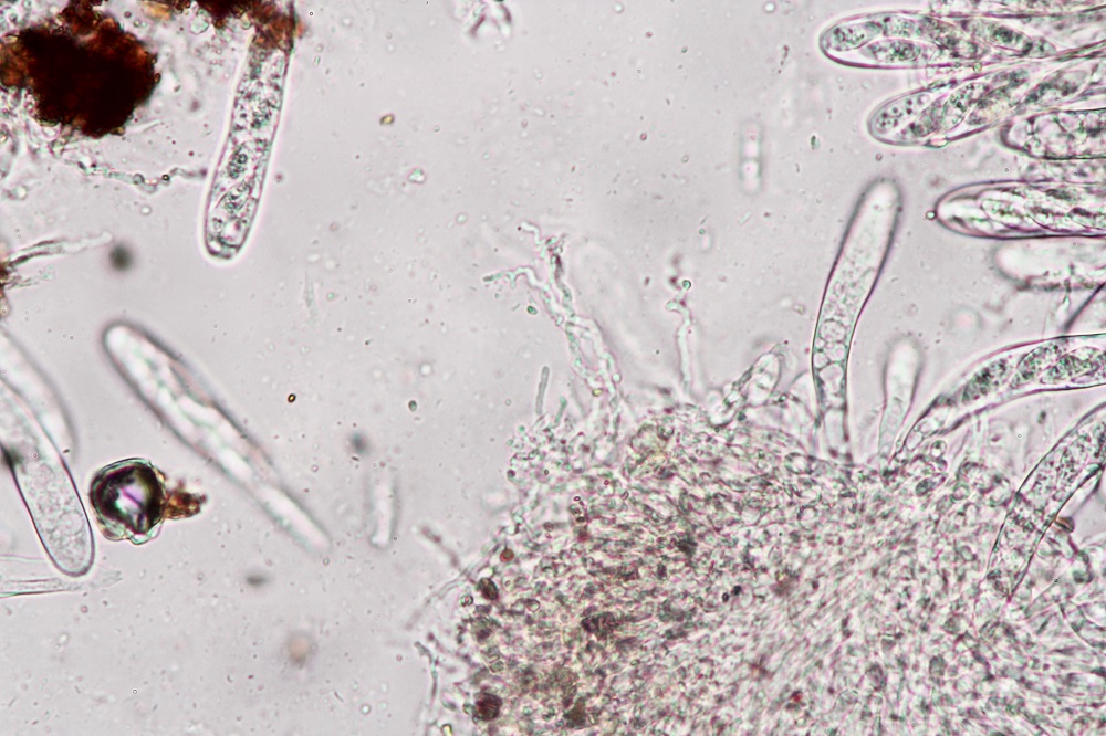 4. Asci mit Haken, unter dem Asci sind die Haare abgebildet