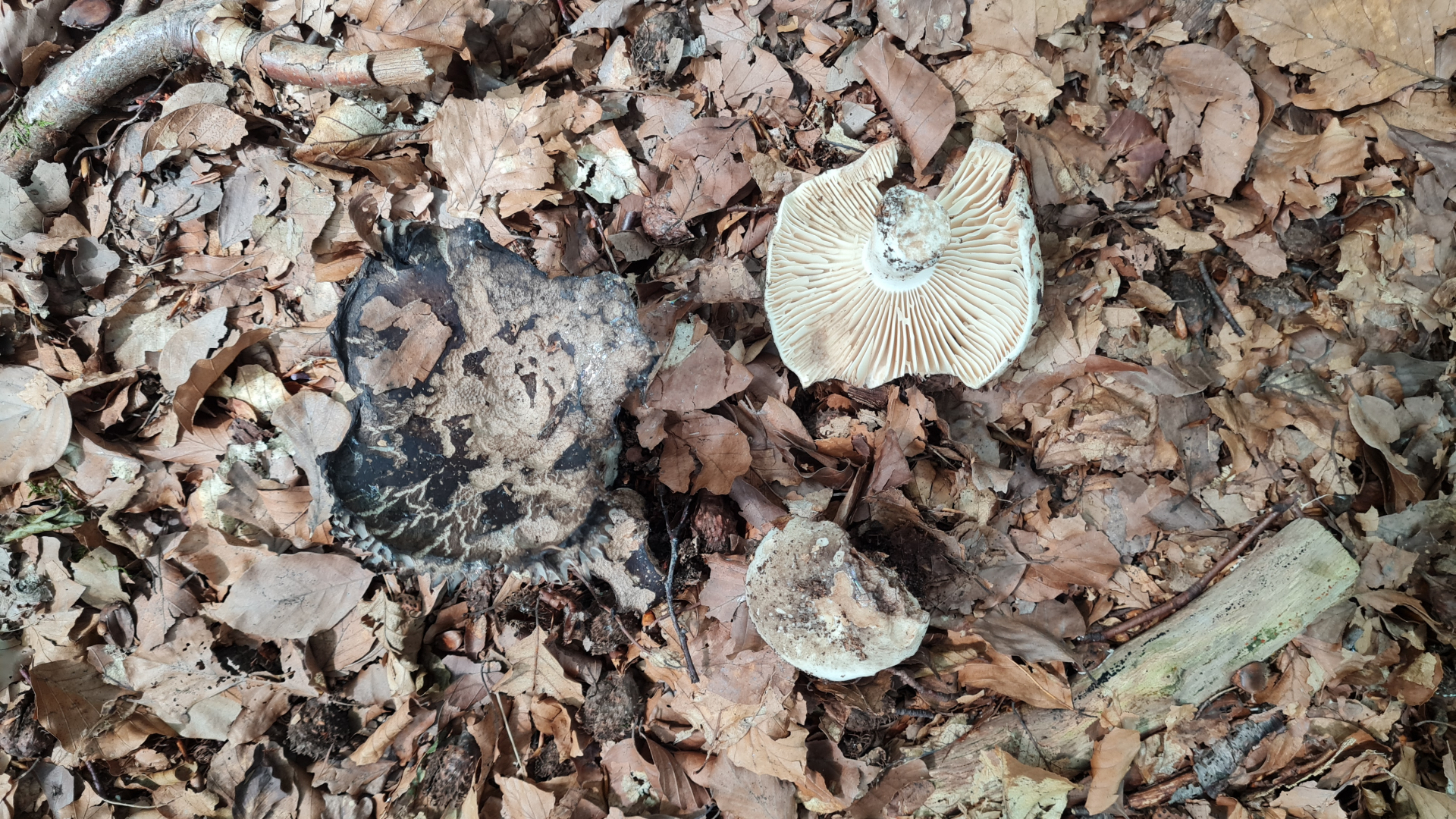 Zum Schluss wollte ich noch den breitblättrigen Schwärztäubling hier reinstellen. Der Pilz hat sehr starre Lamellen, die bei Druck sofort wegbrechen: