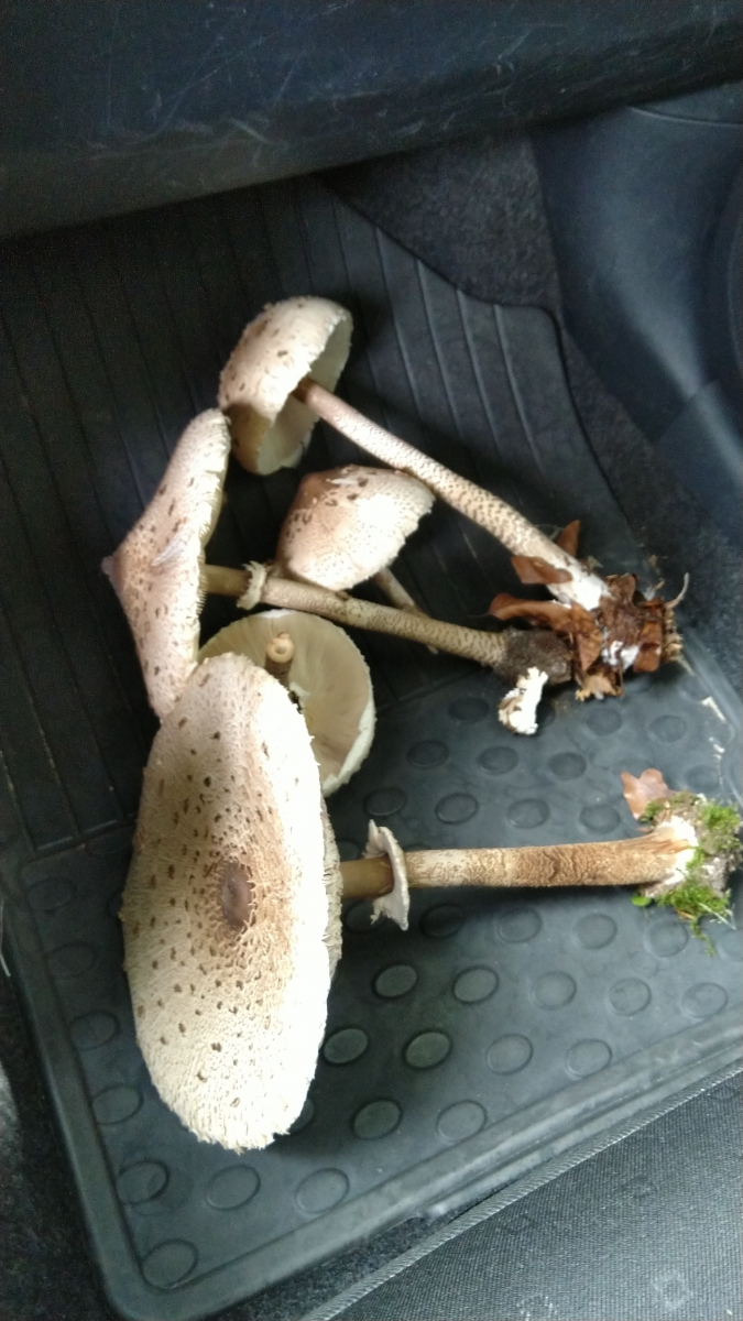 auf dem weg zum Wald fand ich heute am Wegesrand zwischen Laubbäumen diese schönen Exemplare. Für mich sind's gemeine Riesenschrimlinge aka Parasol. Schuppen lassen aich mit dem finger teilweise inkl. Huthaut ablösen. Ringe sind verschiebbar, Natterung passt für mich auch. Geruch ist sehr angenehm nussig/pilzig. Sporenpulver weißlich. Stimmt ihr mir dazu? Bevor ich reinbeiße, hätte ich gerne eure Meinung, sind meine ersten Parasolpilze.
