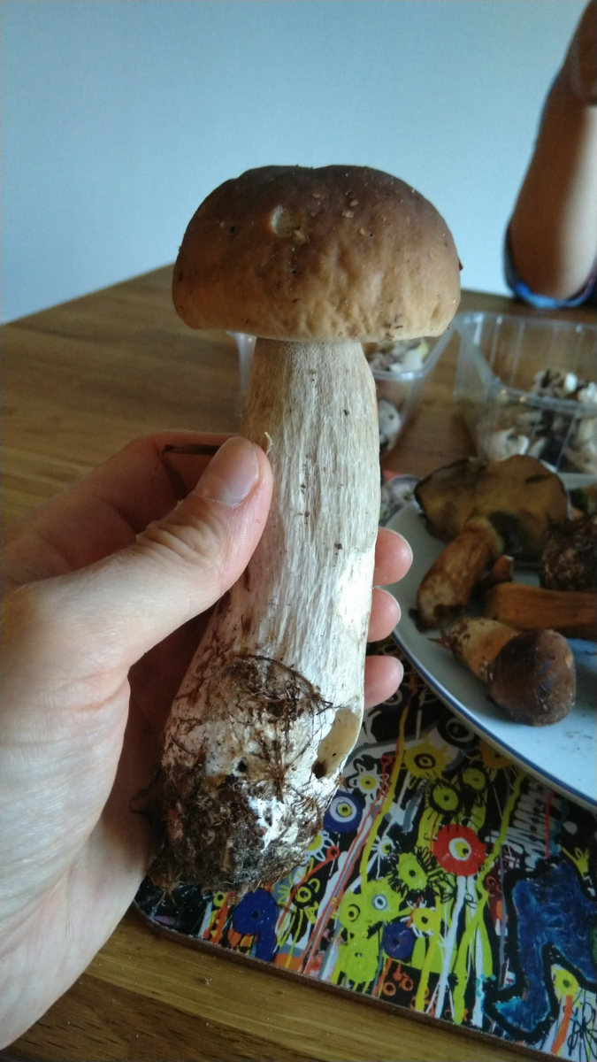 • Also wenn der Pilz trotz Schneckenfraß noch frisch und fest ist, schneide ich die Stellen weg und verwerte den Rest 😉