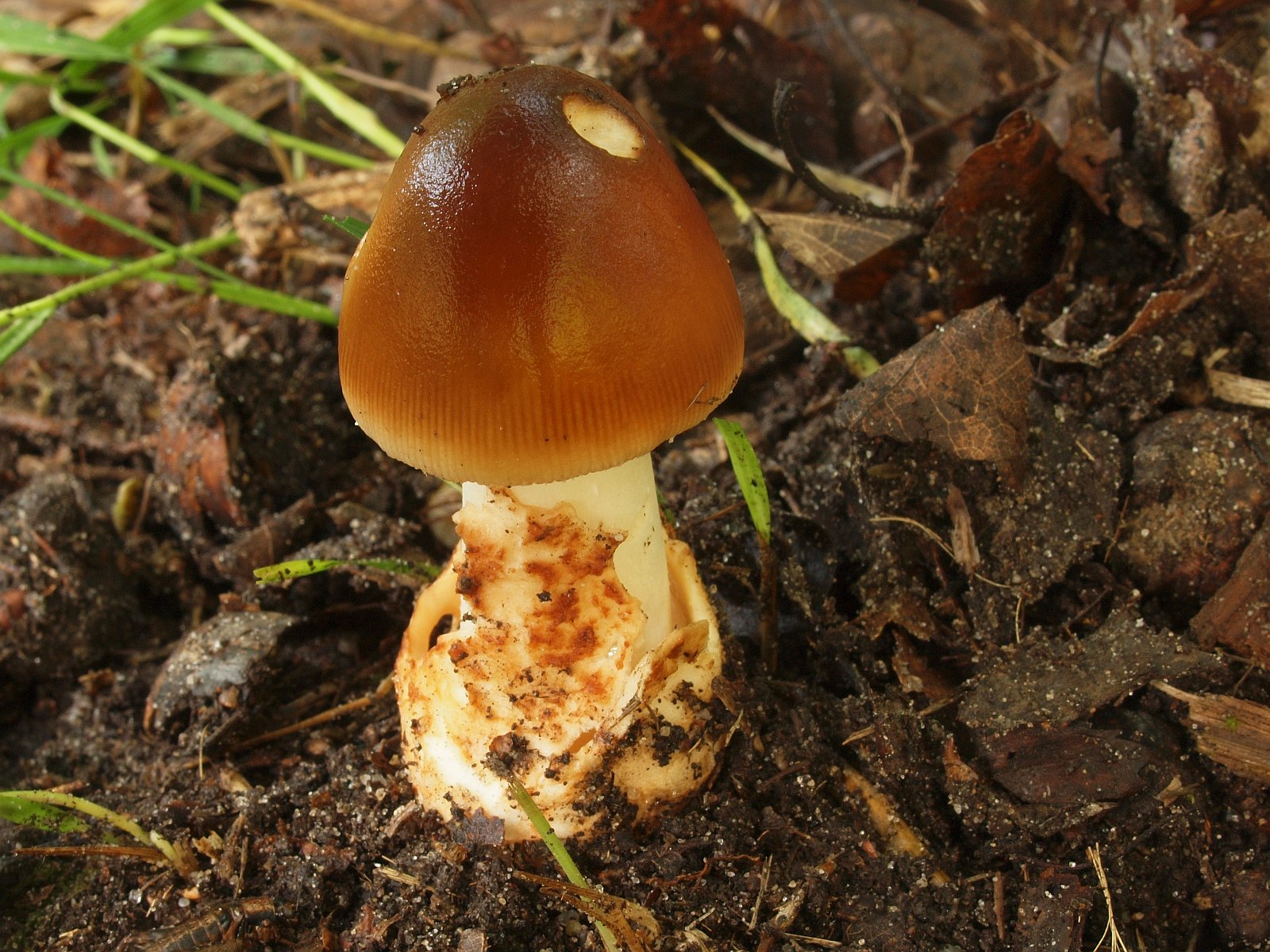 Sowohl bei Eiche als auch bei Birke zeigte sich Rotbrauner Scheidenstreifling (Amanita fulva)
