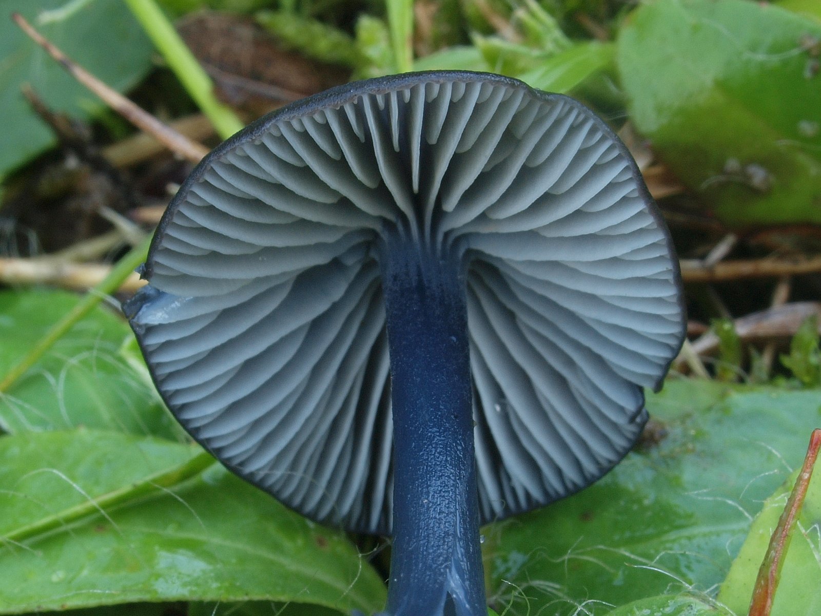 So blaue Lamellen hat gewöhnlich Entoloma chalybaeum aber der sollte laut Schlüssel braune Schneiden haben. Wahrscheinlich eine noch nicht publizierte neue Art.