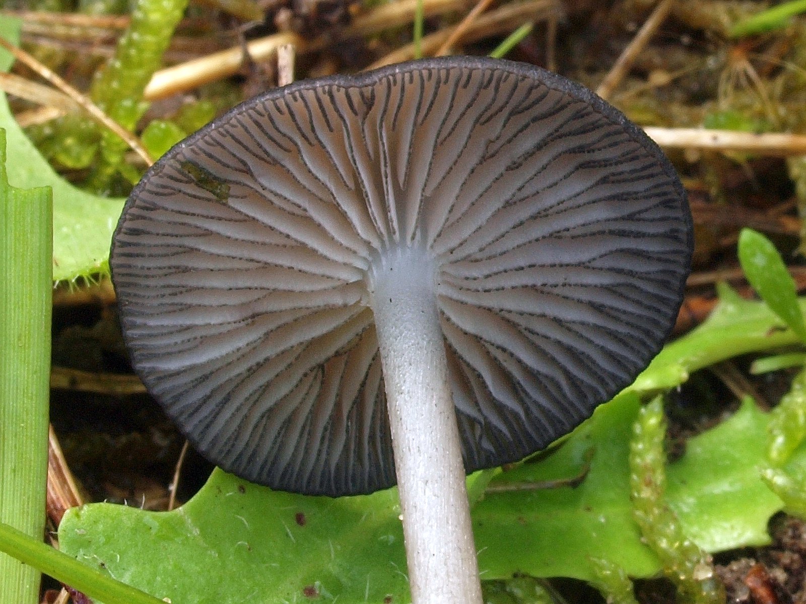 Leptonie ohne blauschwarze Töne und vollständig gerieft. Gestreifter Rötling oder Zärtling (Entoloma longistriatum)