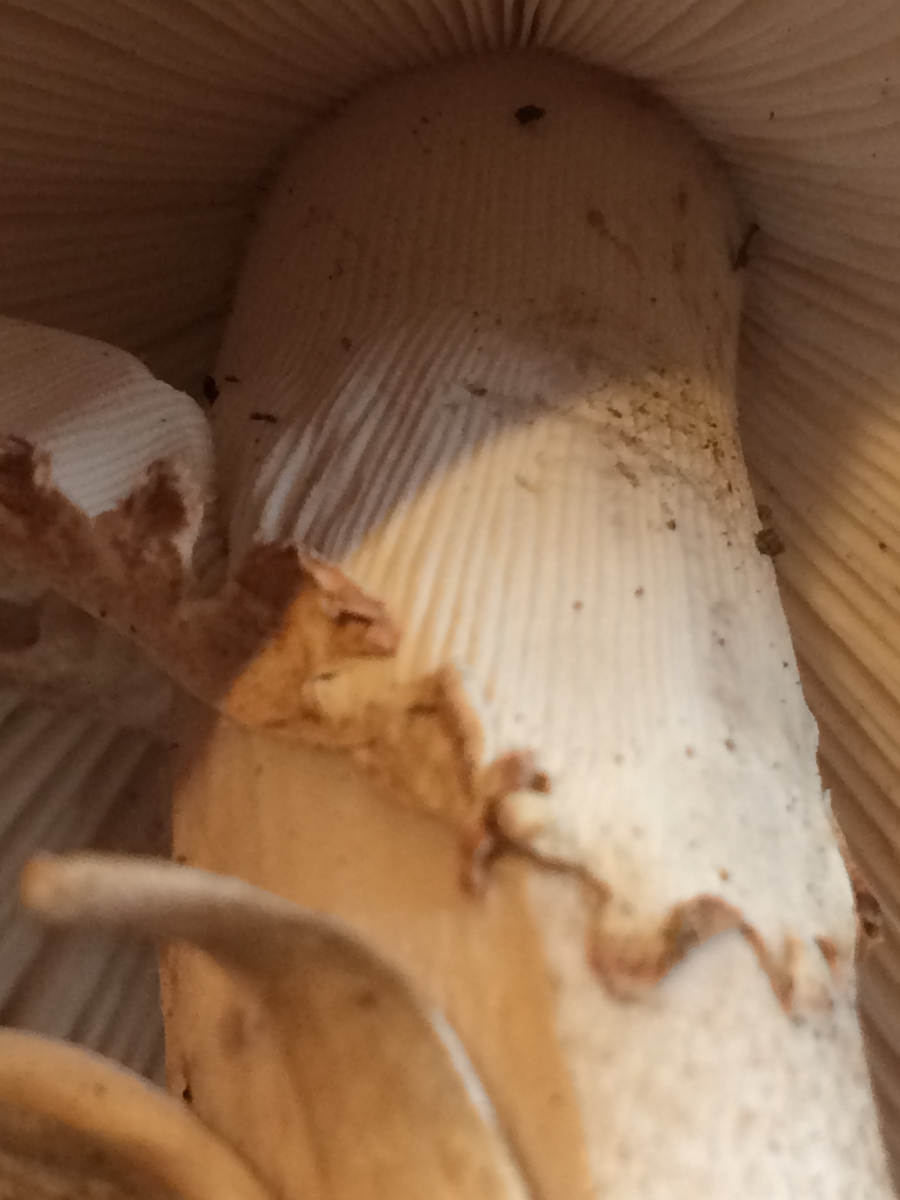 Hutrand nicht gerieft, Rottöne in Hut und Stiel, Velumreste eher grau als weiß, Manschette deutlich gerieft.