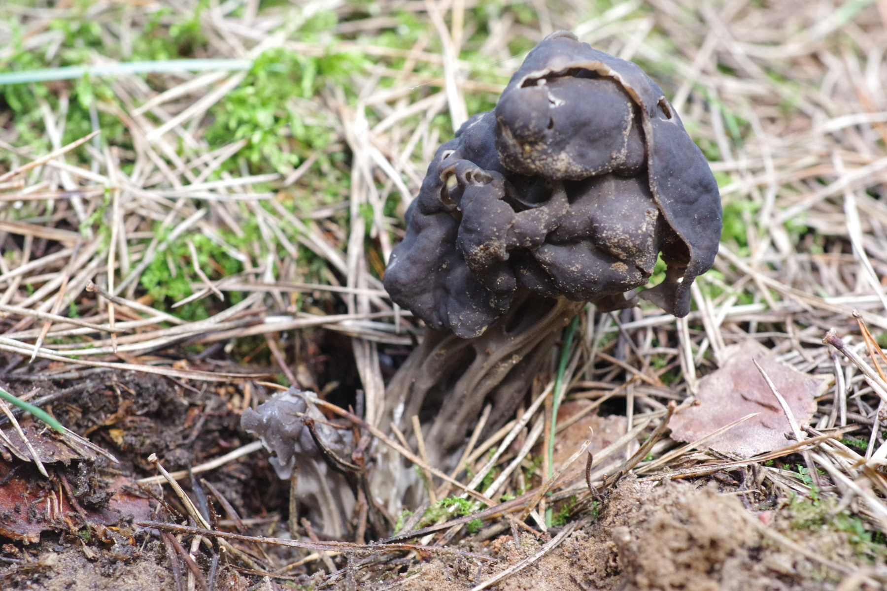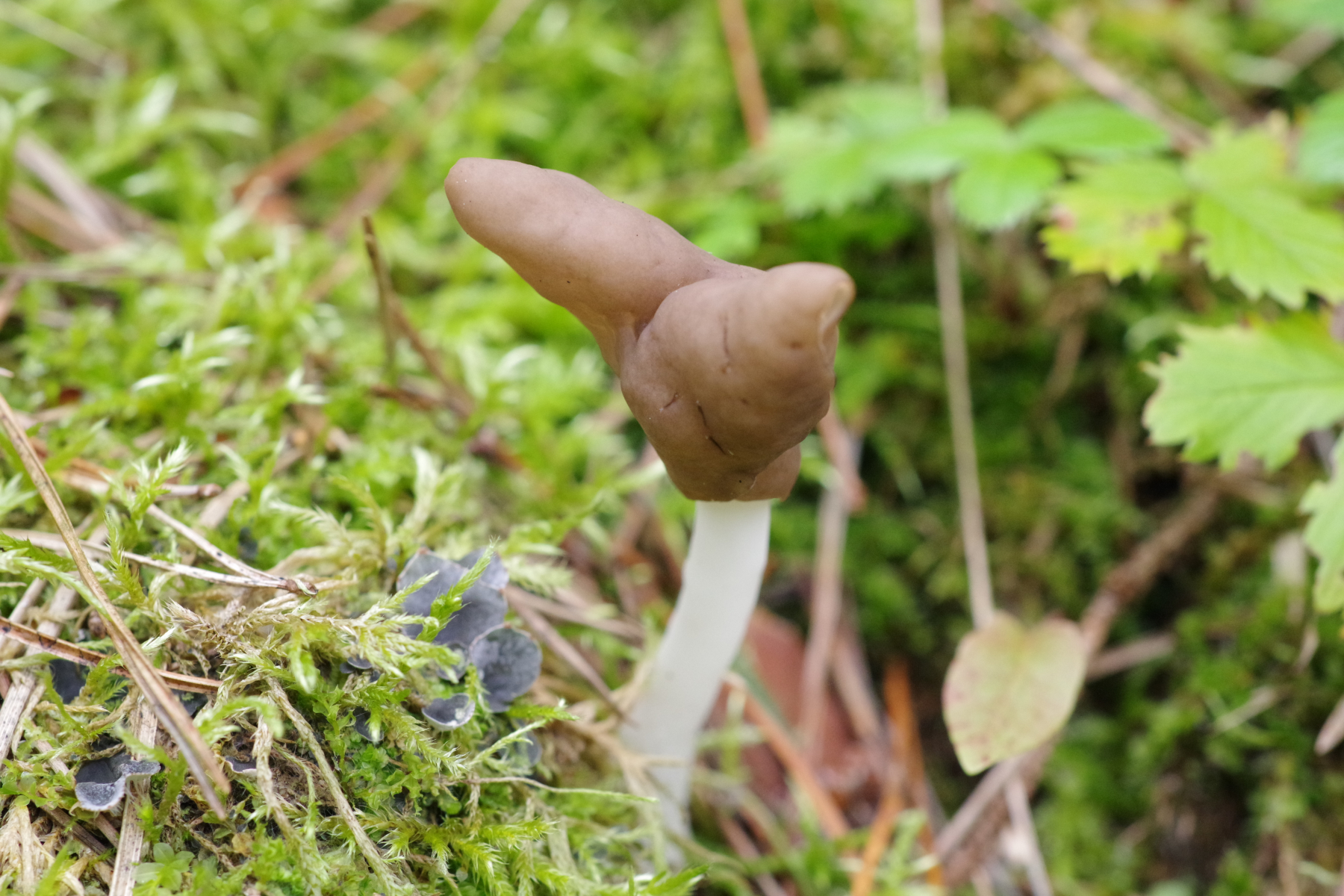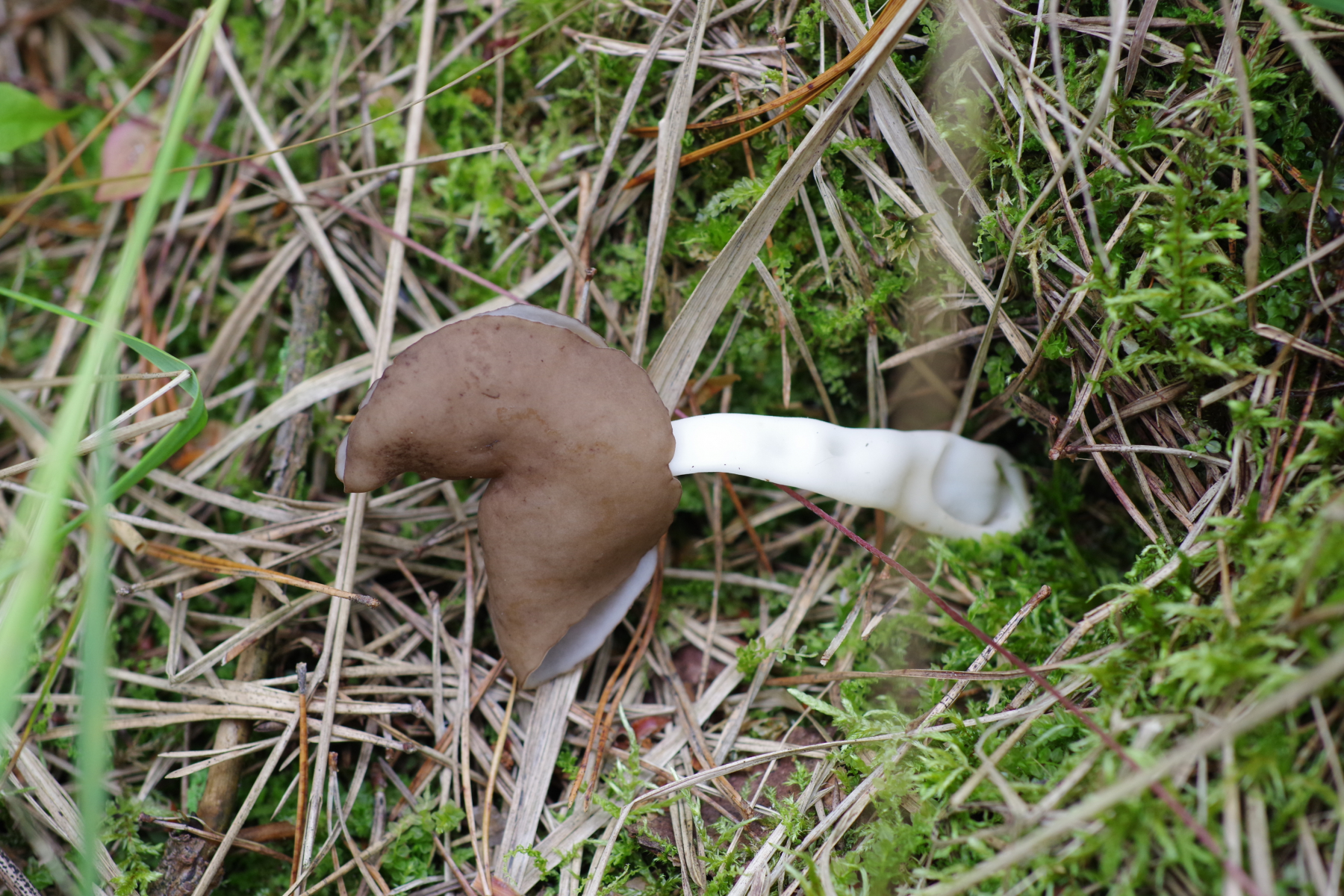 2) ähnliches Biotop, aber weniger licht. Ziemlich wuchtiges Exemplar, Einzelstück, aber wohl ziemlich sicher Helvella sulcata