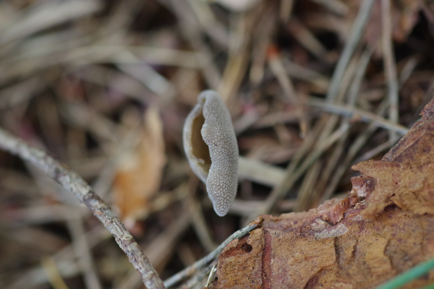3) in einem Kiefernwald der vor etwa 60 auf landwirtschaftlicher Fläche gepflanzt wurde, relativ wenig durchforstet. Samtiger ungefurchter Stiel und schiffchenförmiger, samtiger Becher. Irgendwas aus der Gruppe um H. macropus/villosa/cupuliformis