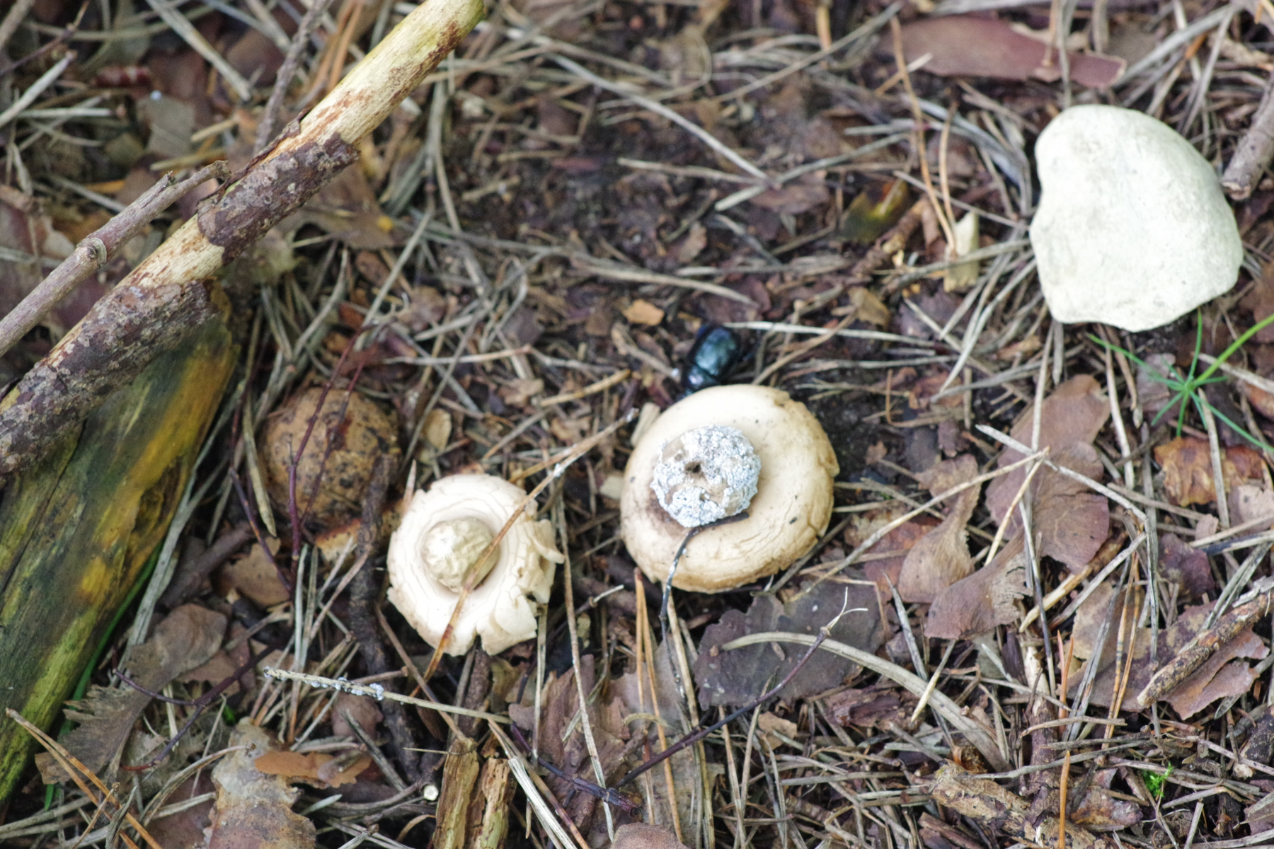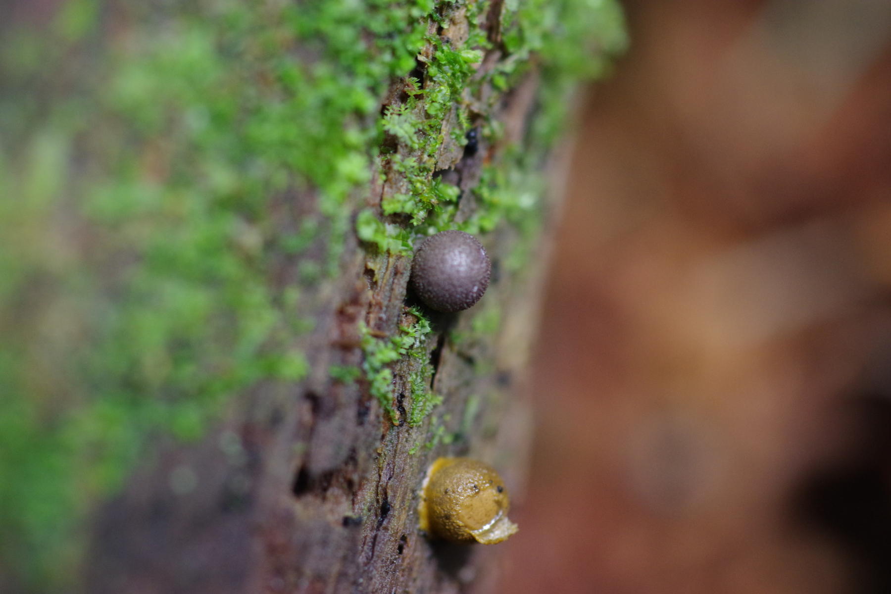 5) Interessante Kombination, die Sporenkapsel von Geastrum fimbriatum mit Befall eines Schleimis