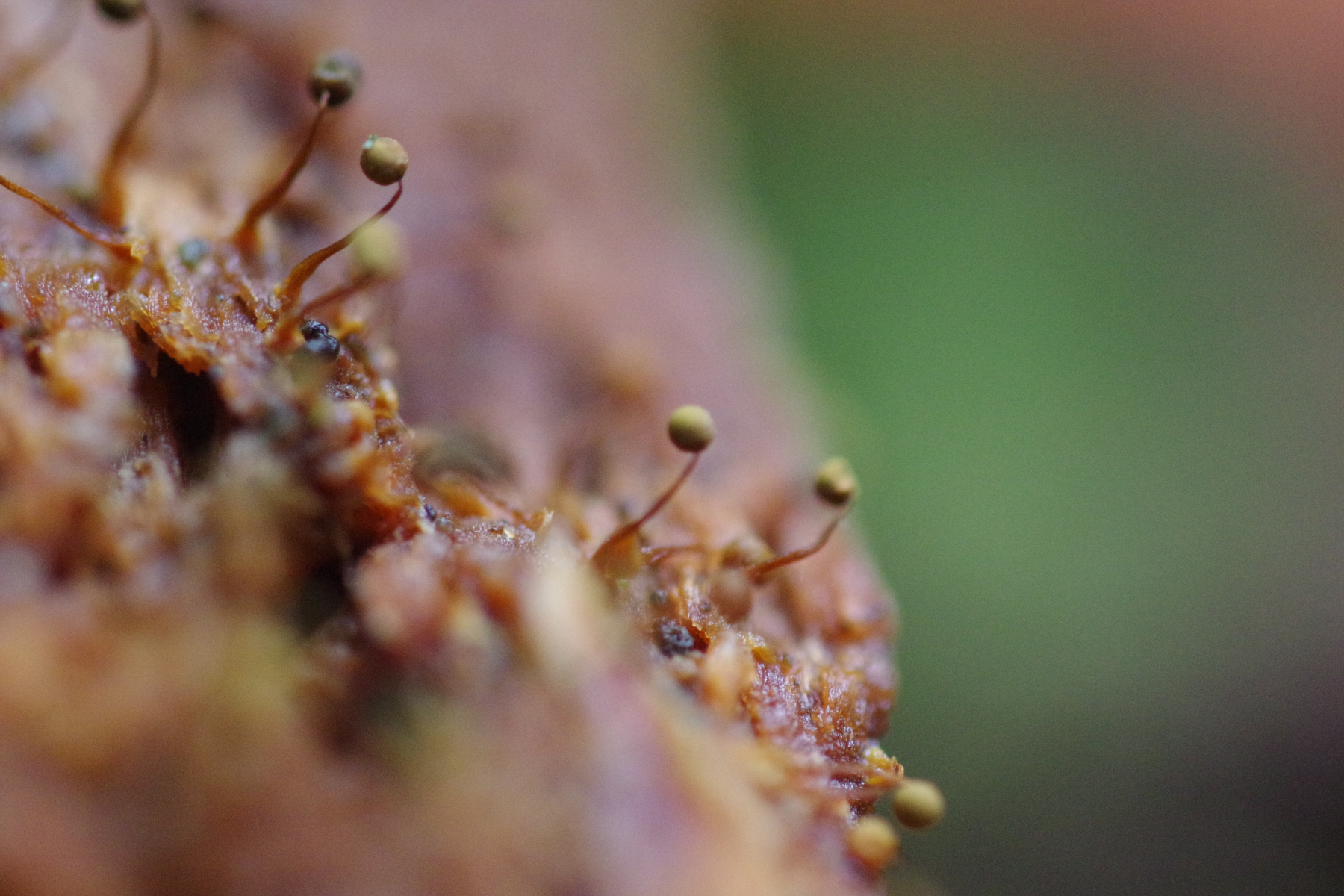 1) grell orange, lachsfarben, alt dunkelgrau, vermutlich Tubifera ferruginosa (vermutlich ein Erstfund, also jedenfalls bewusst)