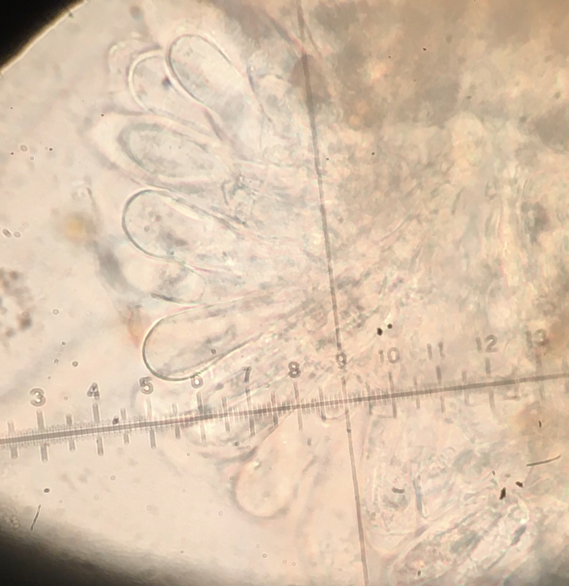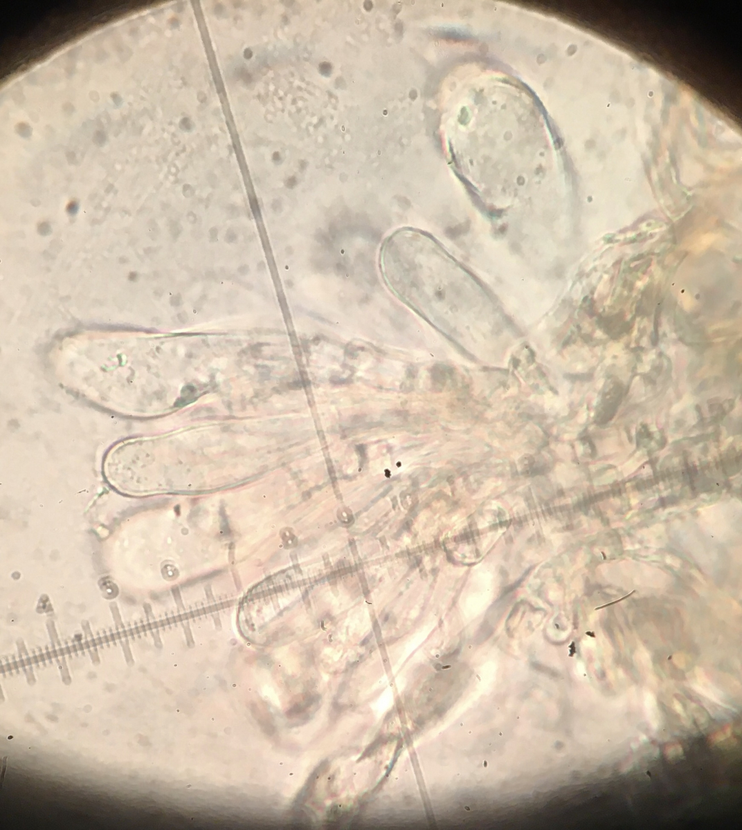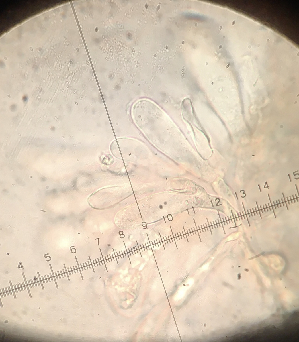 heute fand ich am Wegrand eine Inocybe mit ca. 2,5 cm Durchmesser, die bei Fagus wuchs. Der Geruch ist für mich schwer definierbar, irgendwie chemisch-würzig. Die Sporen messen 9-11 x 5-6, die Zystiden sind teilweise geteilt und messen bei der dicksten Stelle 12.