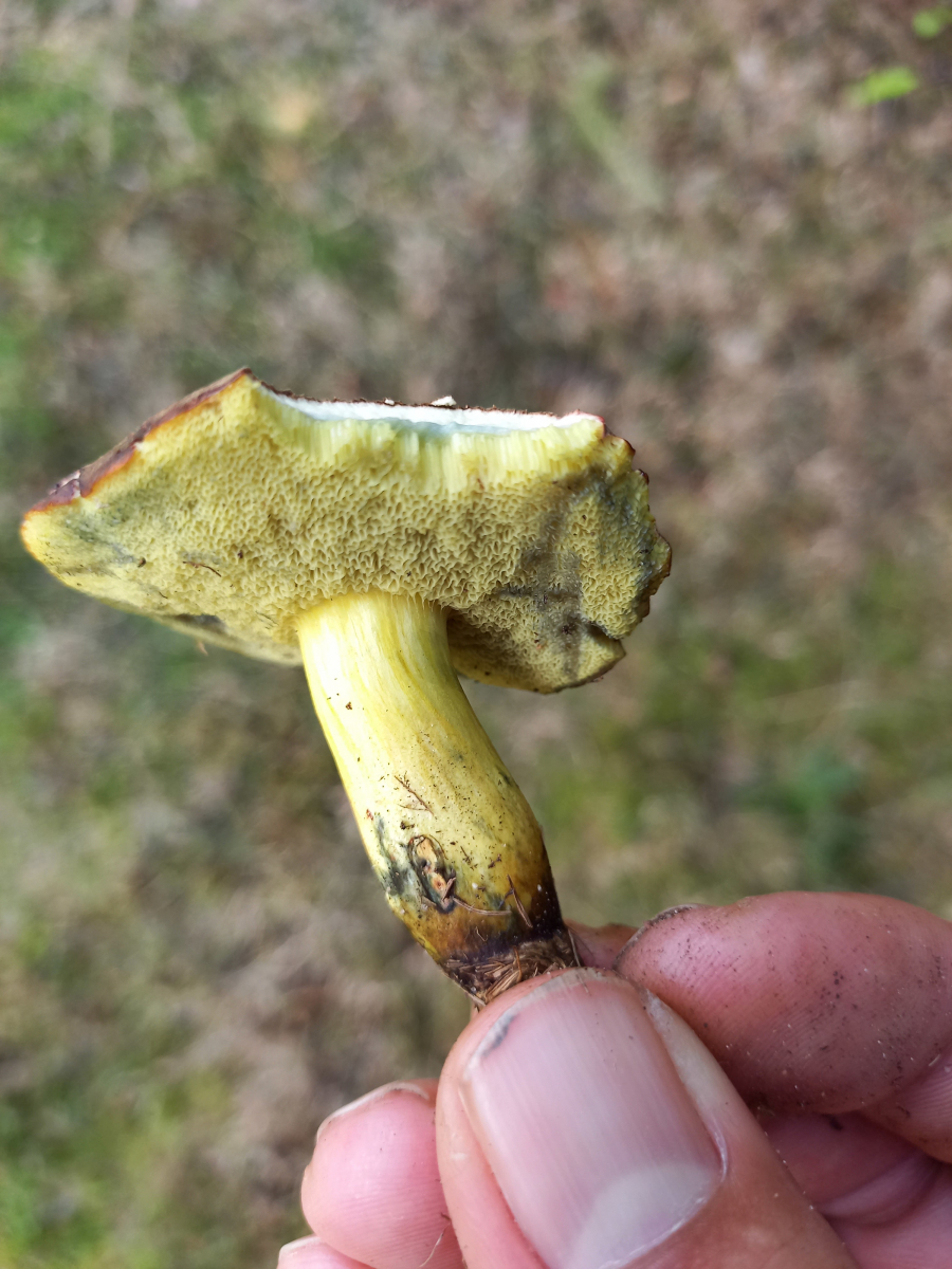 Ich merke gerade, dass ich mal ein paar mehr Fotos von Xerocomus-Arten machen muss, in meinem Bildarchiv sind nur wenige Fotos. Von X. ferrugineus habe ich sogar gar keins. Auf meinen Ziegenlippen-Bildern konnte ich jetzt bei der Durchsicht keins mit roter Subcutis finden, wobei das nicht heißen muss, dass das nicht vorkommt. Ich würde es aber zumindest eher untypisch finden.