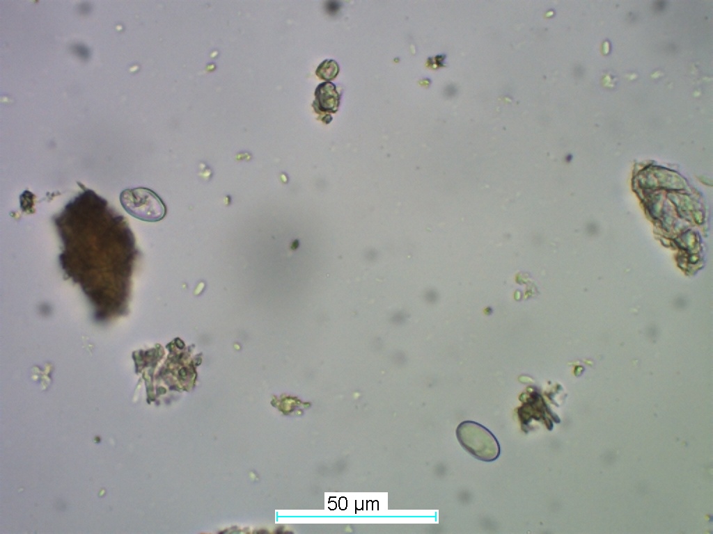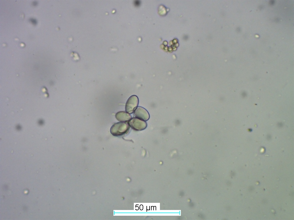 Bei der Mikroskopie finde ich ovale, hyaline Zellen, die ich als Sporen vermute (15x9µm)