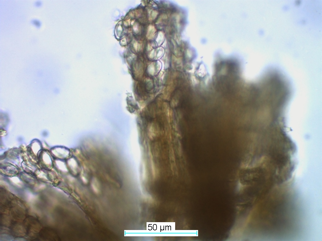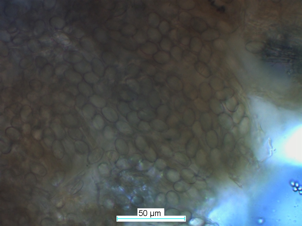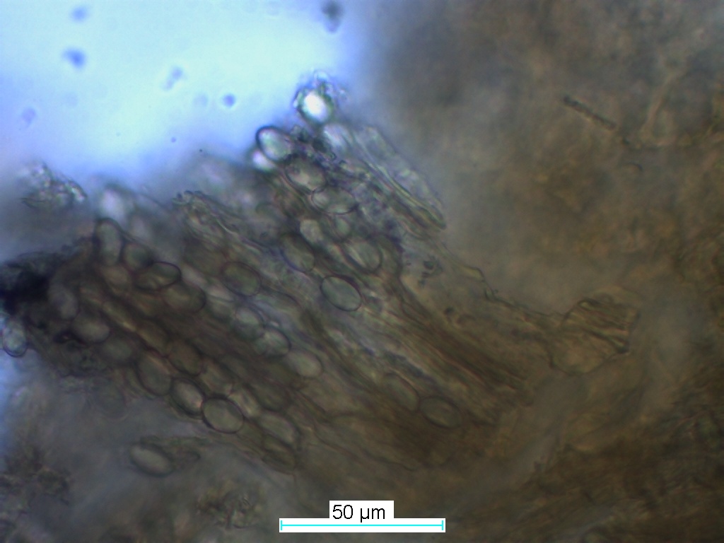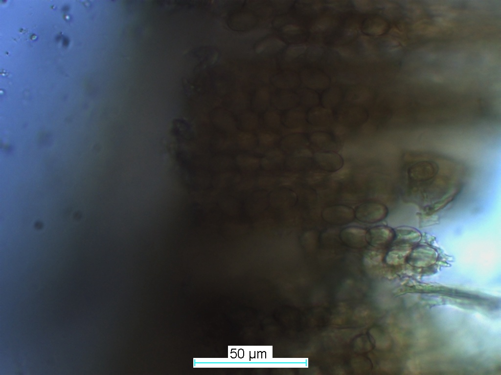 Leider sehe ich keine Schläuche, nur die Sporen, die schlauchförmig angeordnet sind und auch keine Paraphysen. Kann das sein, das Schläuche und Paraphysen im trockenen Zustand nicht mehr sichtbar sind, zerfallen o.ä.? Wenn ich das Präparat etwas quetsche habe ich dann nur wieder die Einzelsporen im Bild.